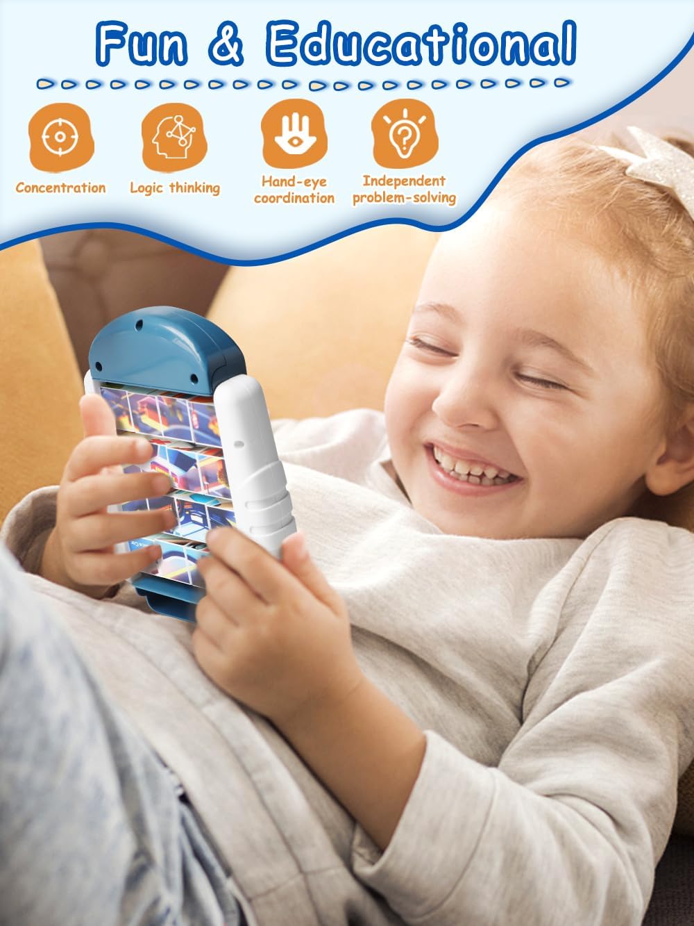 - FINGER DEXTERITY TRAINING - Children need to engage multiple fingers in the rotation of 16 small cubes, which demands fine motor skills and hand-eye coordination. Restoring the 4 similar patterns exercises children's image cognition and logical thinking. Certainly, it also fosters patience and concentration.