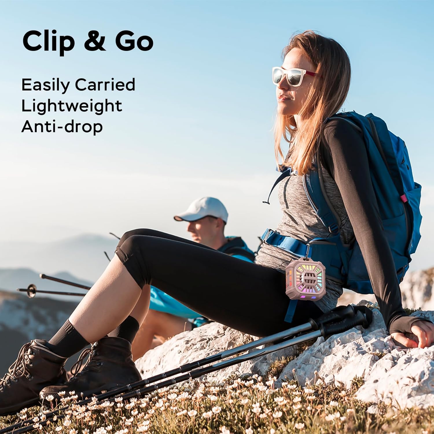 - ăGrab and Go Clip-on Speakersă The M12 portable size speaker, crafted for ultimate portability, making it your perfect on-the-go companion. Whether you're golfing, at the beach,clip on the bag even hiking running, its compact sleek and lightweight design, complete with a convenient hook, ensures easy carrying perfectly fitting into your backpack.