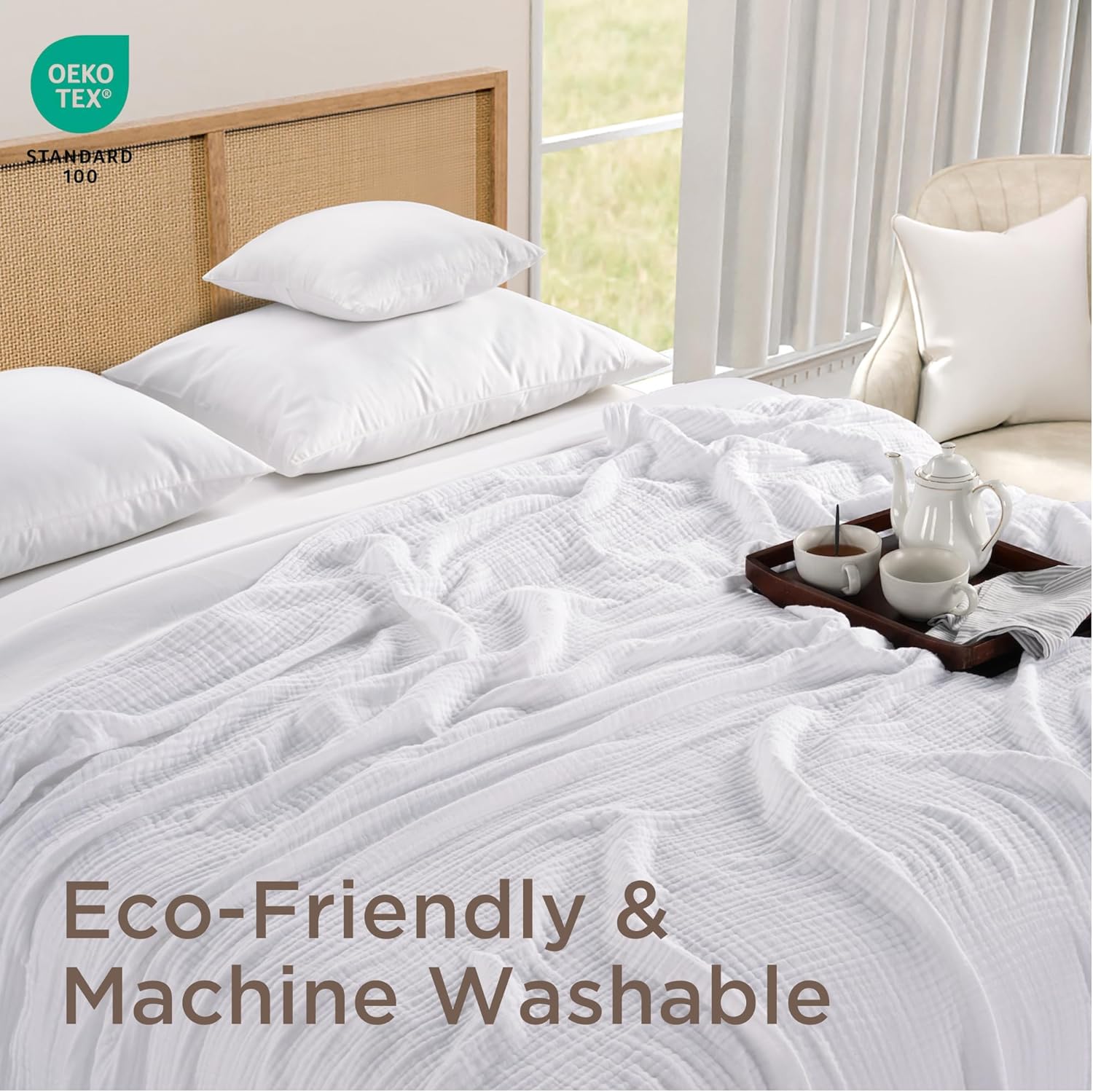 Threadmill Summer Muslin King Size Blanket | 4 Layer 100% Cotton Gauze Blanket | Lightweight, Soft, and Breathable Muslin Blanket for All Seasons | White