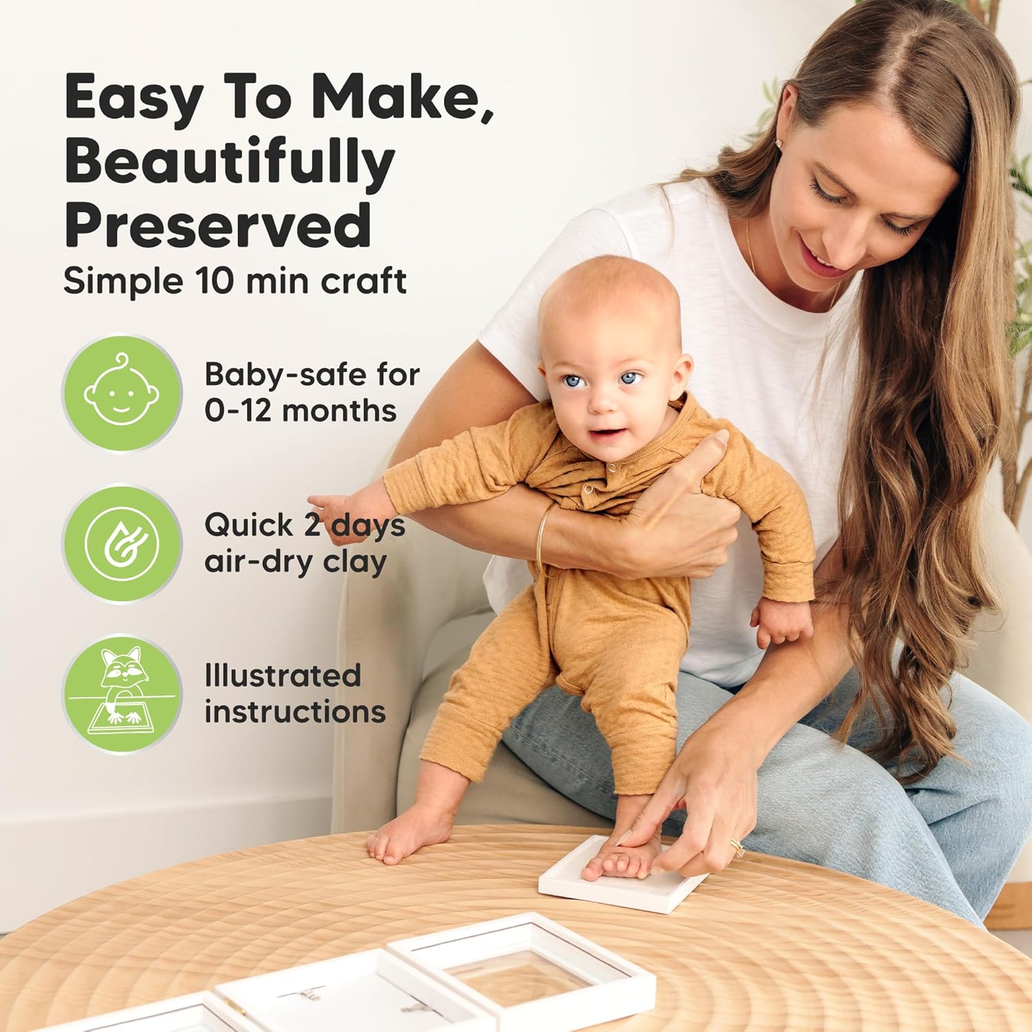 - 100% Safe Food-Grade Clay - Our baby picture frame features 100% baby-safe air-dry clay, perfect for preserving your baby prints. Our premium material ensures durability, the baby handprint and footprint maker will look flawless for years to come.