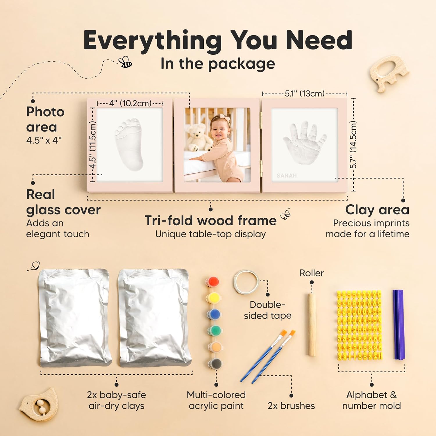 - Sturdy Wood Frame, Real Glass Cover - Our tri-fold baby handprint footprint keepsake kit maintains its pristine condition for years to come. It’s a lovely, everlasting newborn keepsake for your baby room decor. A must-have newborn baby essentials.