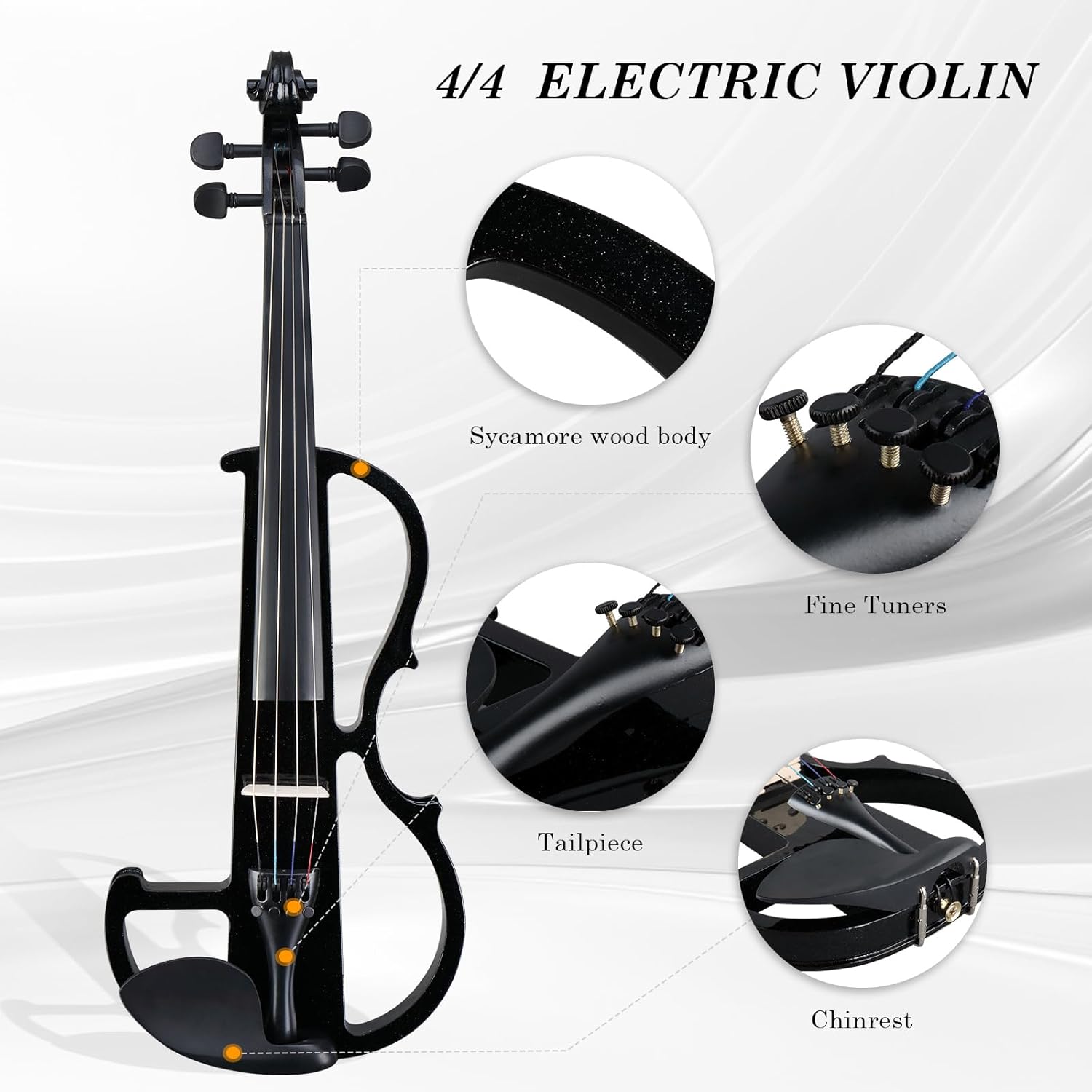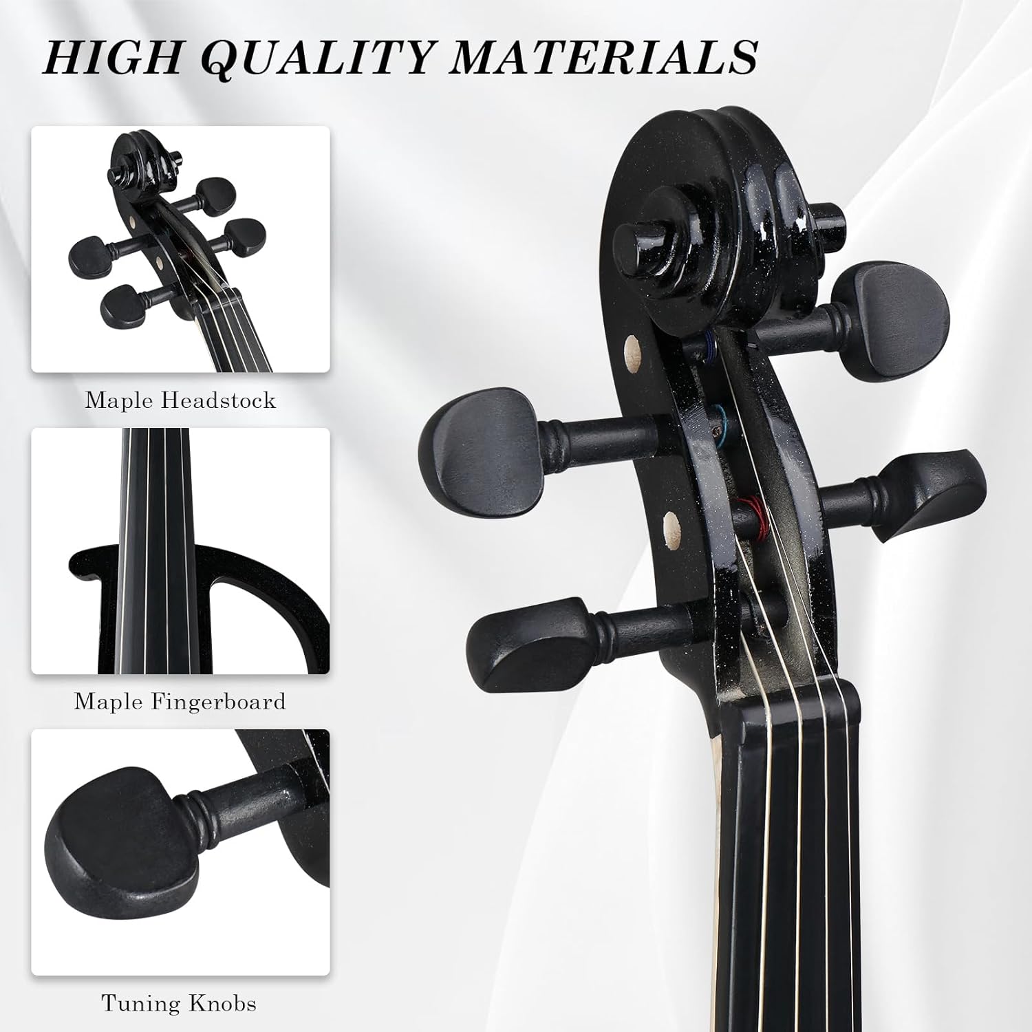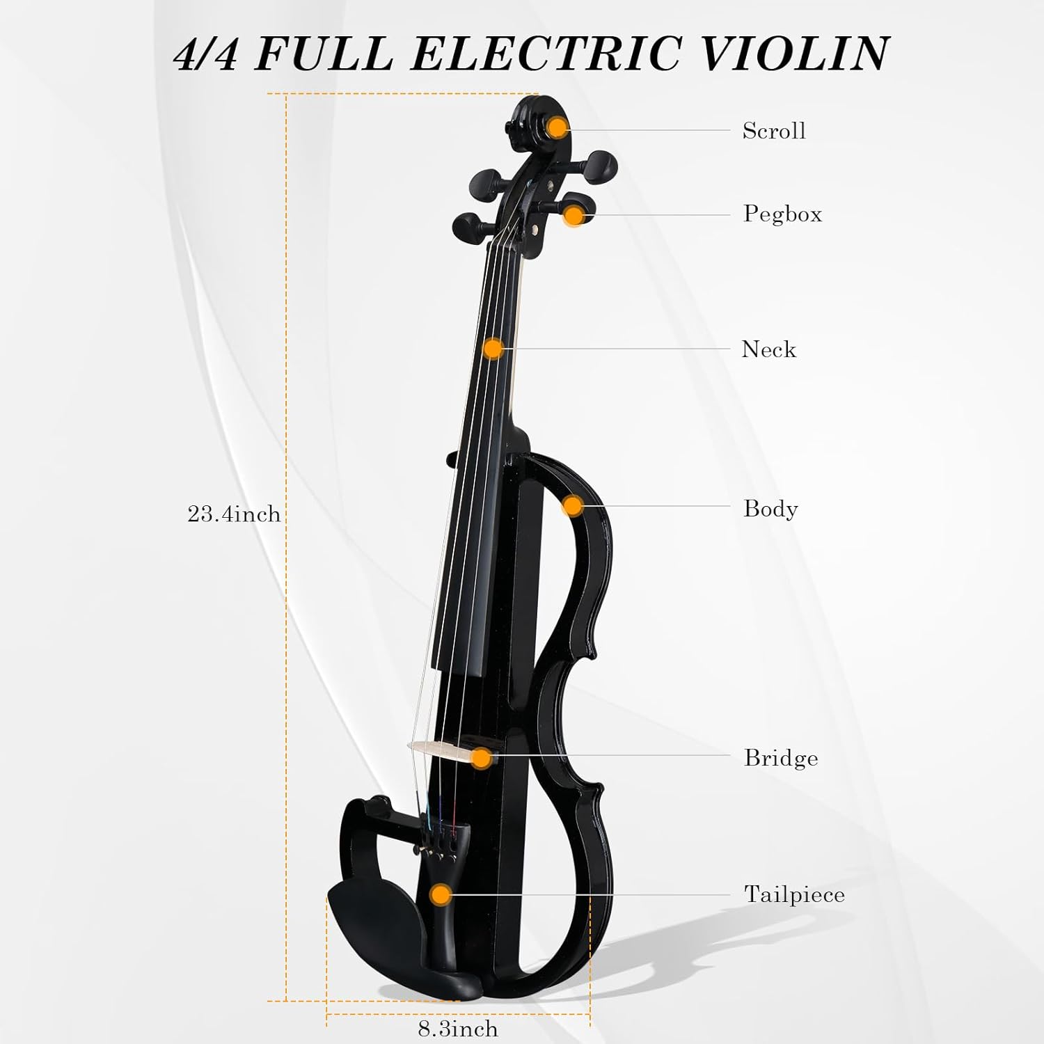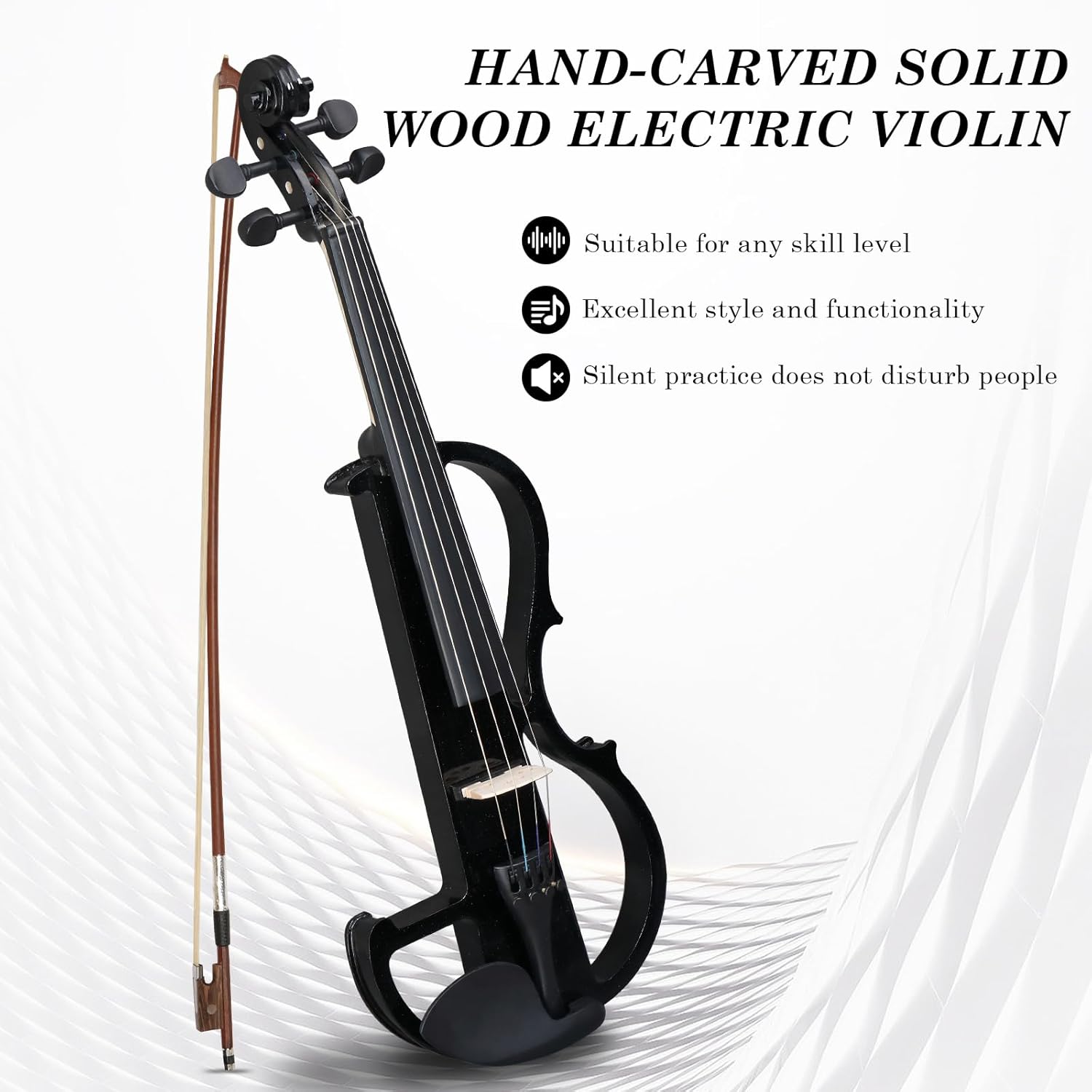 Ktaxon Full Size Electric Violin, 4/4 Acoustic Silent Electric Violin for Beginner Adults Teens with Ebony Fittings, Case, Bow, Headphone, Rosin and Extra String (Black)