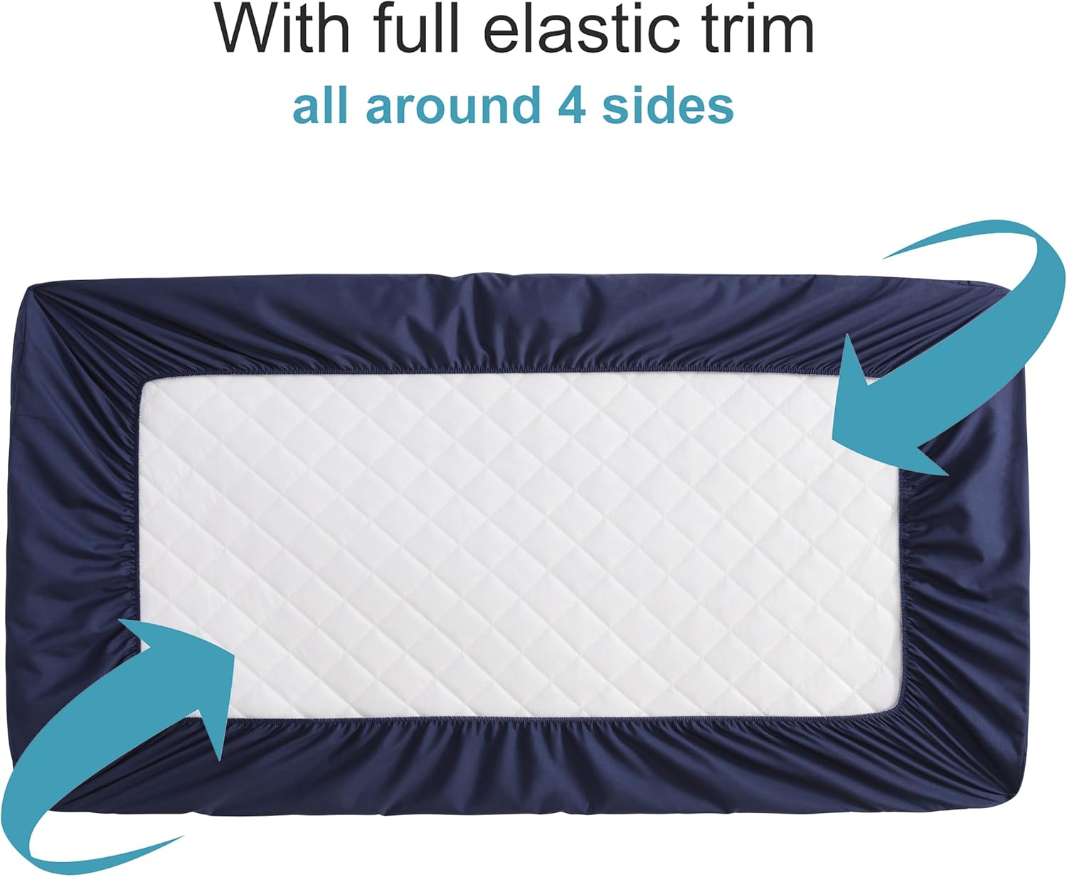 - Fit mattress protector with full elastic trim:: With full elastic trim all around 4 sides, safely and securely fitted for mattresses and makes sure that the mattress protector stays in place and not easy to slip.