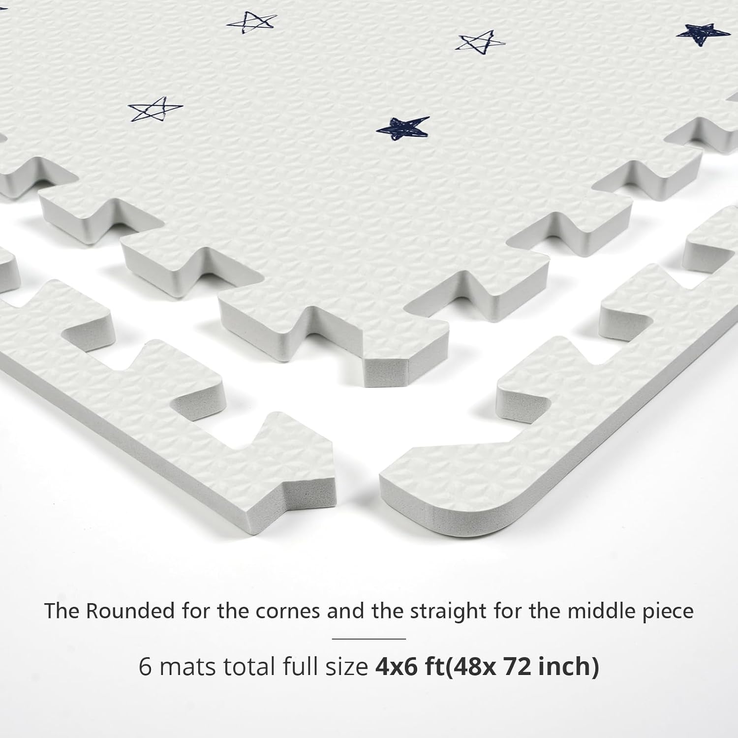 Baby Foam Play Mat, PIGLOG 72x48 Baby Crawling Mat, Floor Mats for Kids for Infants with Interlocking Floor Tiles, Toddler Playmats for Indoor and Outdoor, Easy to Clean Playroom Mats, Star