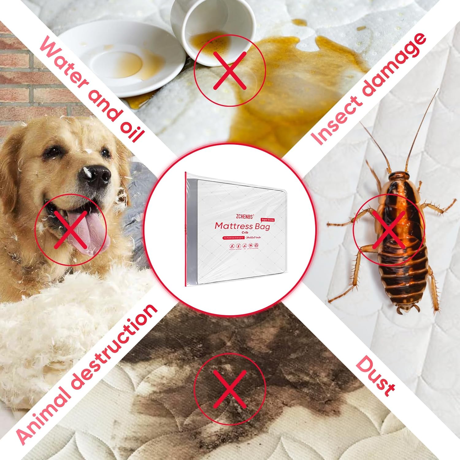 ZCHENBS® – Mattress Bags for Moving and Storage,Mattress Bag with Zippers,5 Mil Ultra-Thick Bed Bag,Waterproof,Anti-Tear,Heavy-Duty Mattress bag (Transaparent/Red, Crib-(1 Pack))