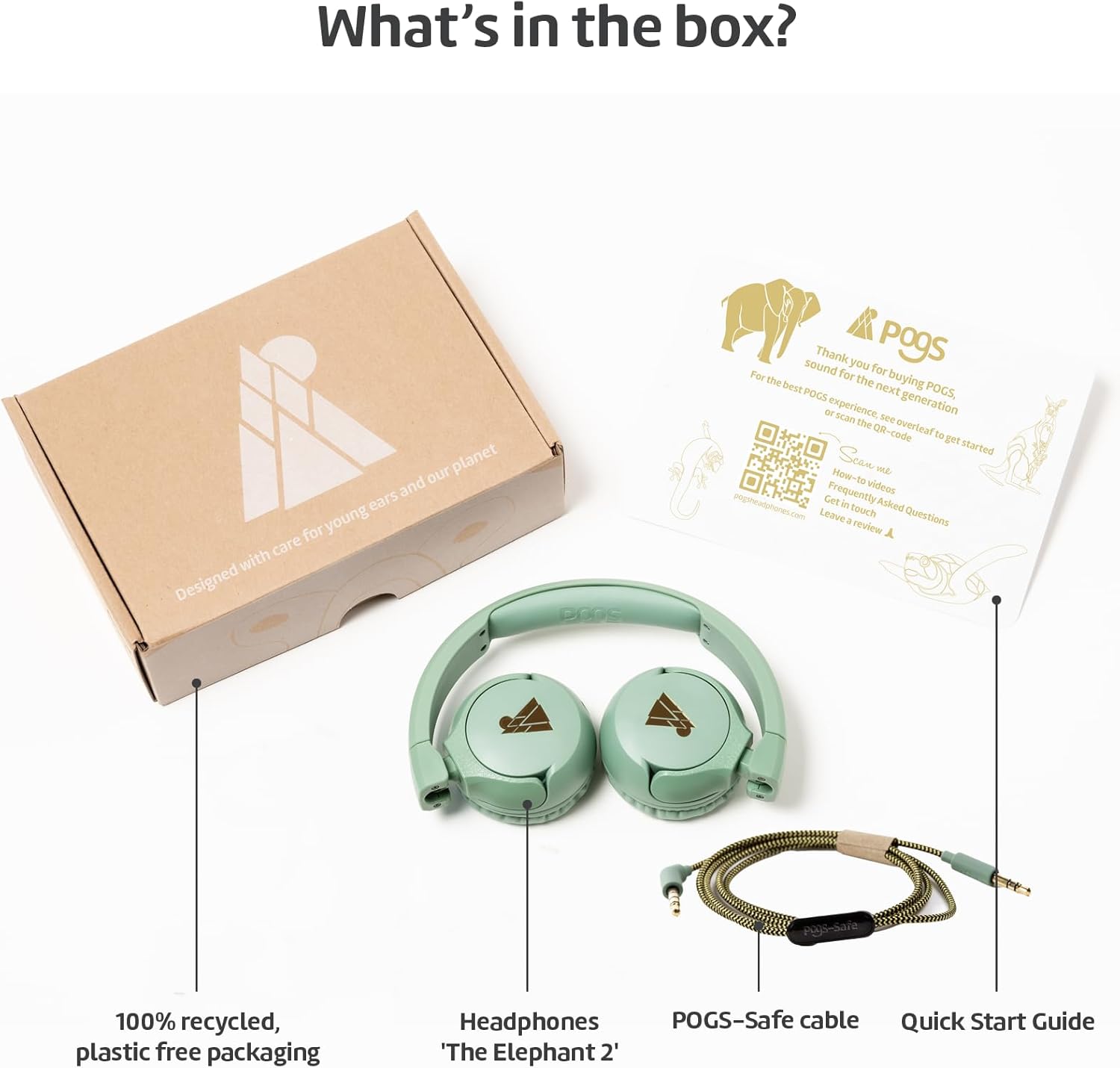 - DETACHABLE CABLES: extend the lifetime of your POGS by replacing the audio cable if needed. The optional POGLink cable enables music sharing with other POGS The Elephant headphones.