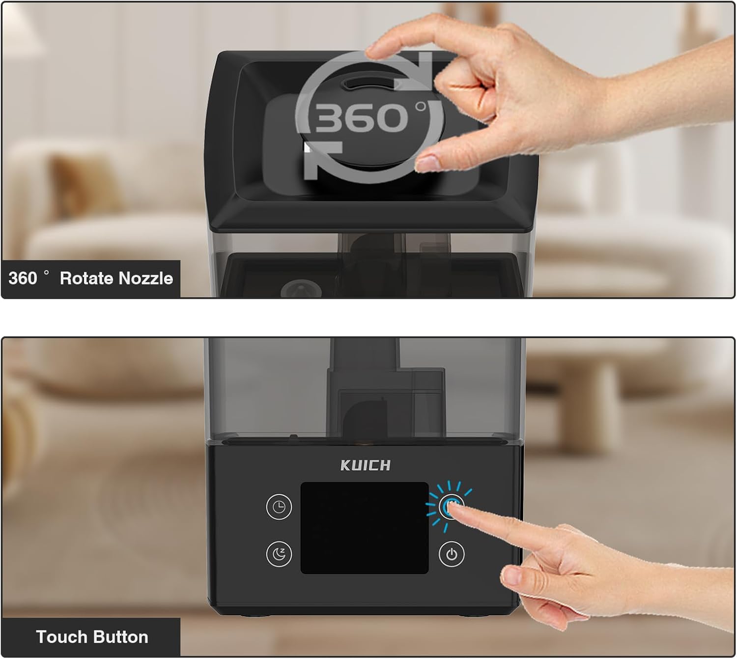 - 【Compact 2.4L Water Tank】- This ultrasonic cool mist humidifier employs a higher frequency ultrasonic misting technology with an oscillation frequency of up to 2.4MHz. That in a finer and more delicate cool mist with improved diffusion. Effectively regulating air humidity, it operates continuously for up to 25 hours in rooms not exceeding 180 square feet. Maintain a stable and healthy environment, bid farewell to sleep disruptions caused by nasal congestion, coughing, or dry mouth. Ideal for bedrooms, nurseries, offices, and indoor plants.