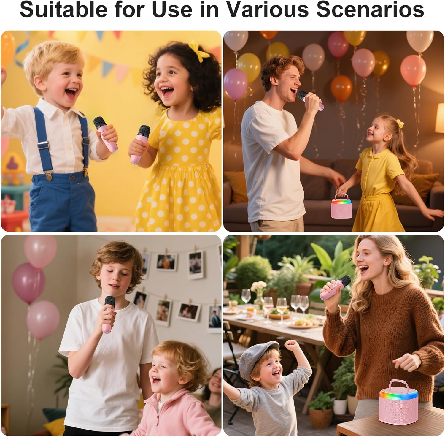 - ♪【Funny Voice Change & LED Lights】With 4 kinds of magic sound, including original, KTV, monster and felmale voice,this Bluetooth party speaker is providing endless fun for kids. Get the party started with our karaoke machine, enhanced with dynamic dancing lights that infuse your party with joy and energy.