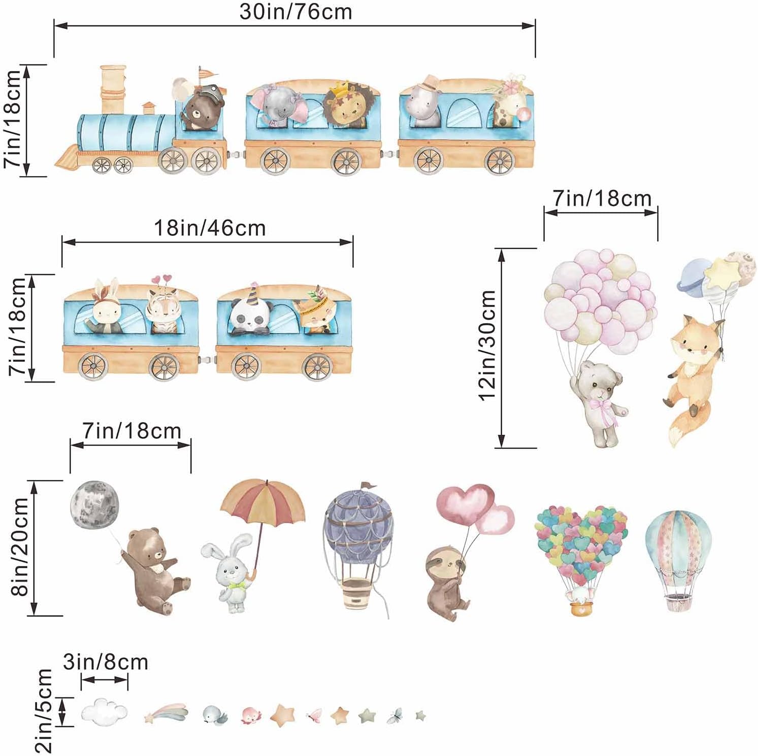Hot Air Balloon Animal Wall Decals - Elephant Lion Giraffe Train Animal Wall Stickers - Baby Nursery Kids Girls Bedroom Daycare Wall Decor
