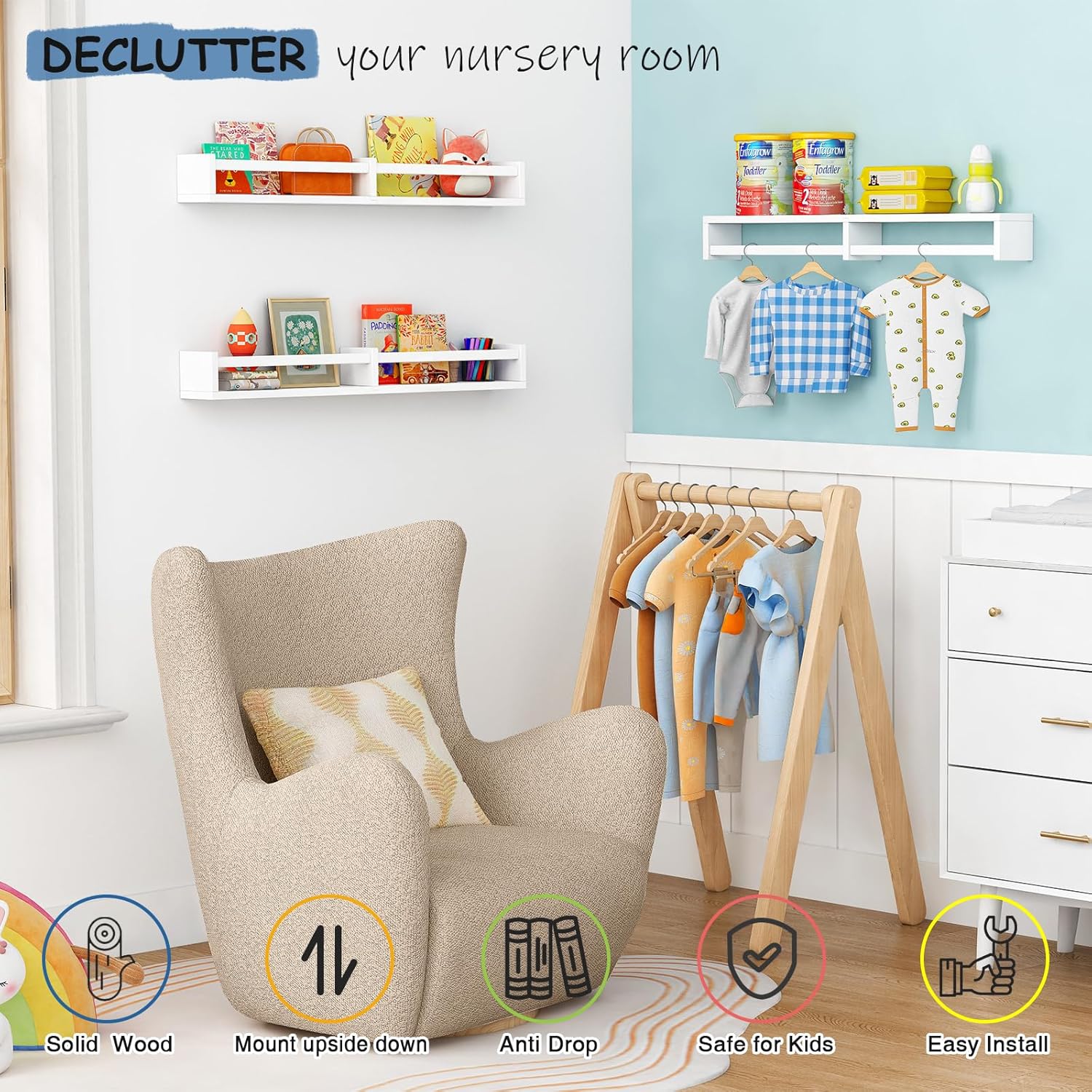 - [Versatile & Multifunctional] The Harwaya large nursery shelves are no limit to creativity! Place them as nursery book shelves in the kids room, cosmetic organizer shelf in the bathroom, spice rack shelf in the kitchen. Mount them upside down as nursery clothes shelves in kids room or nursery. They’re going to fit any space and any style thanks to their essential design and to their classic white color.