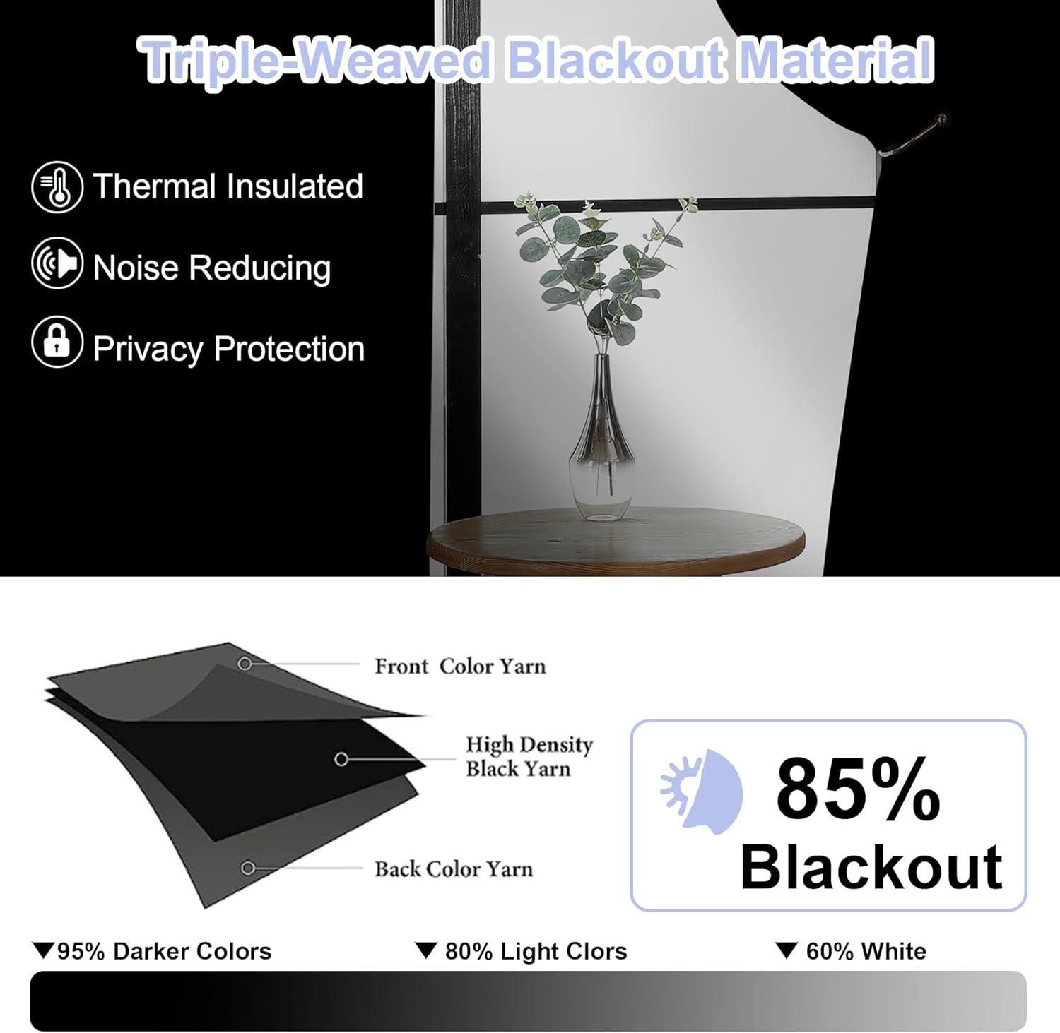- Light Blocking: Our blackout curtains block 98% to 85% of light and UV, with darker colors up to 98% and medium shades at 85%. Even white curtains reduce light by 60%. Perfect for any room or lighting preference. Choose based on your room's direction and personal style. Ideal for bedroom privacy or living room ambiance. Our curtains blackout blend function with style, fitting seamlessly into your lifestyle.