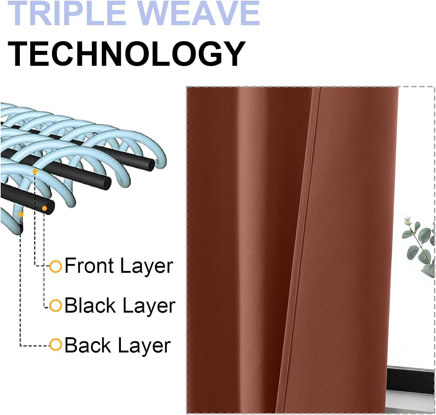 - High-Quality Materials: Crafted from high-quality polyester fiber, guarantee both stiffness and drape. This soft yet durable light-blocking fabric boasts a three-layer weave, with a middle layer of black yarn acting as an effective light-blocking panel, effectively blocking light while providing privacy. The identical colors on both sides further enhance its aesthetic appeal, adding a touch of elegance to your home.