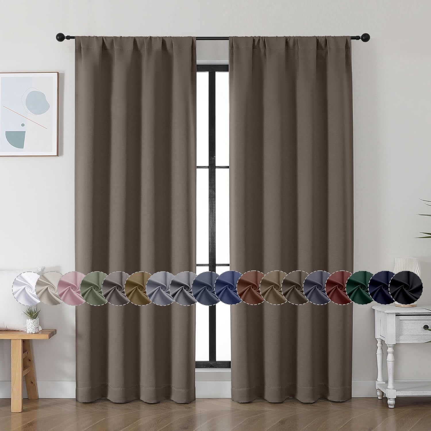 - Light Blocking: Our blackout curtains block 98% to 85% of light and UV, with darker colors up to 98% and medium shades at 85%. Even white curtains reduce light by 60%. Perfect for any room or lighting preference. Choose based on your room's direction and personal style. Ideal for bedroom privacy or living room ambiance. Our curtains blackout blend function with style, fitting seamlessly into your lifestyle.