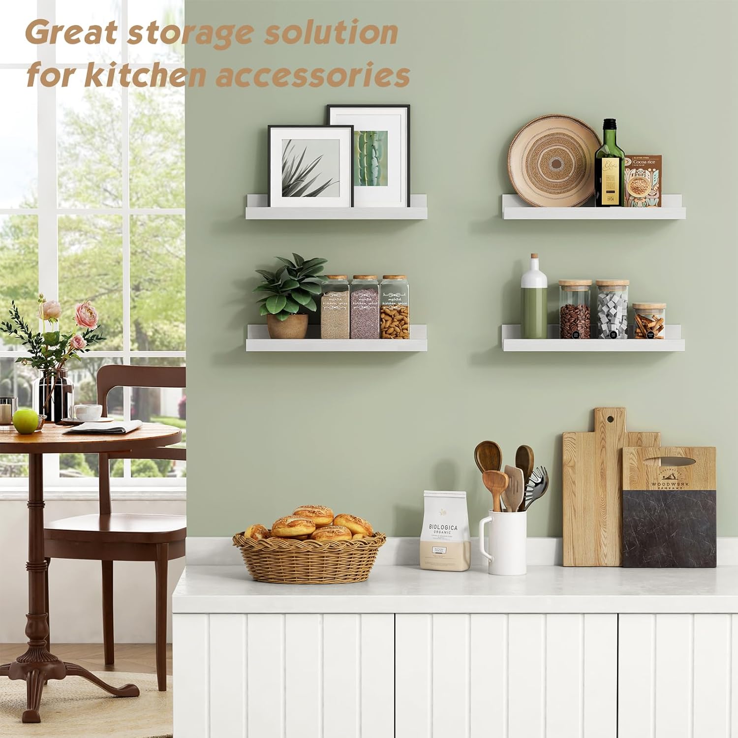 - ăSuitable for All OccasionsăThe sleek, simple design of wall mounted kids bookshelf allow them to match with nearly any aesthetic. The kids room wall bookshelf can help to declutter or free up counter space in your playroom to make places much tidier and neater - from using as a baby bookshelf in nursery to organizing wall decor, toiletries, essential oil in a bathroom.