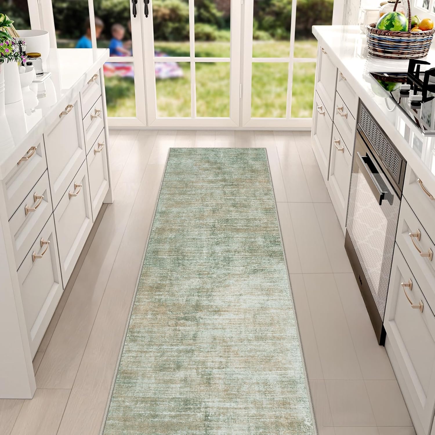 Washable Modern Abstract Kitchen & Hallway Runner Rug, 2'6''x8', Green with Non-Slip Backing