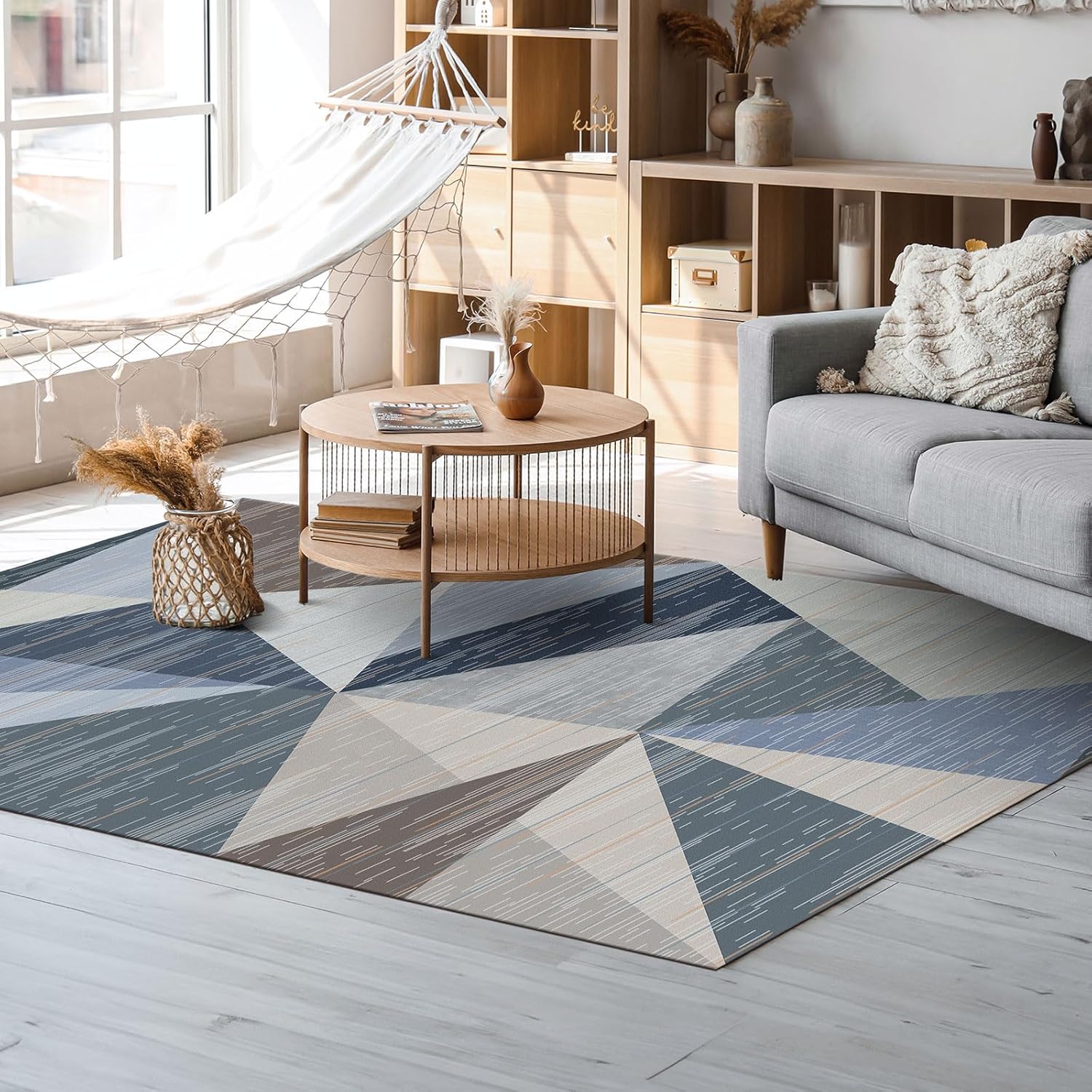 HOMFINE Washable Modern Area Rug - Geometric 10x14 Rugs for Living Room, Bedroom, Machine Washable Rug Soft Non Slip Non Shedding Area Rug - Blue, 10'x14'