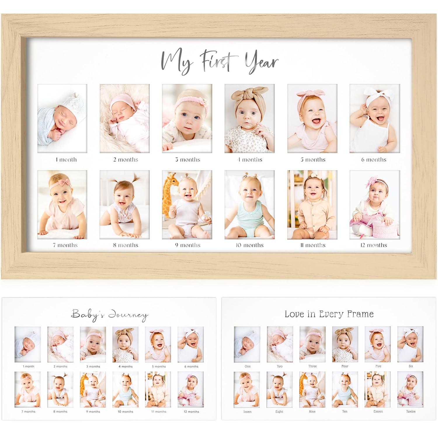 - Baby First Year Birthday β The 12 photo slots each sized at 1.45" x 2" create a visual timeline of baby's first smile to first steps. Celebrate your baby's growth with this timeless 12-month photo frame, perfect for capturing these fleeting moments.