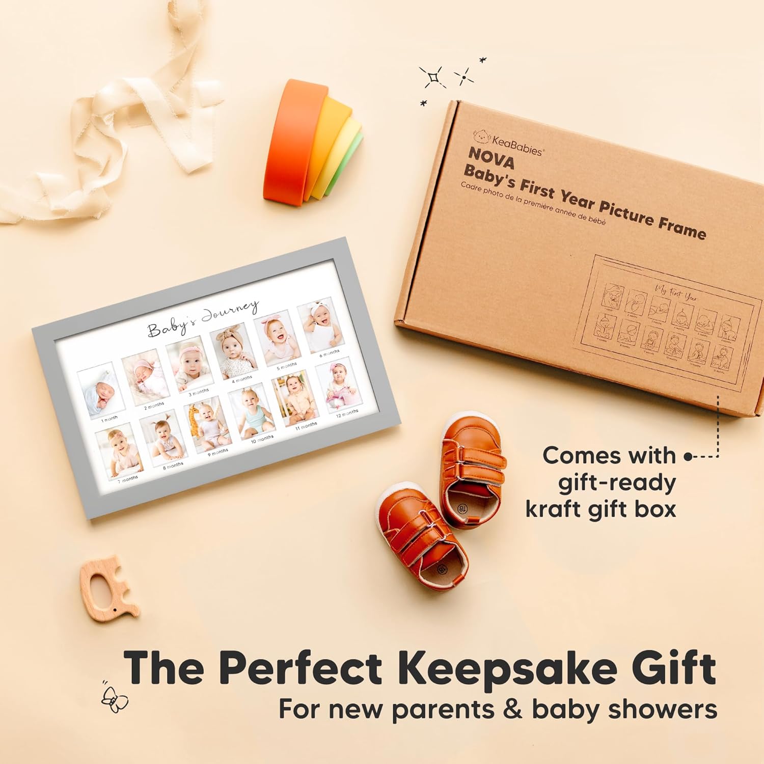 - Baby Shower Gift β Celebrate the joy of new life with KeaBabies Nova Baby My First Year Photo Frame. This newborn baby picture frame, captures precious milestone, makes a thoughtful baby registry gifts for new parents. Comes packed in kraft gift box.