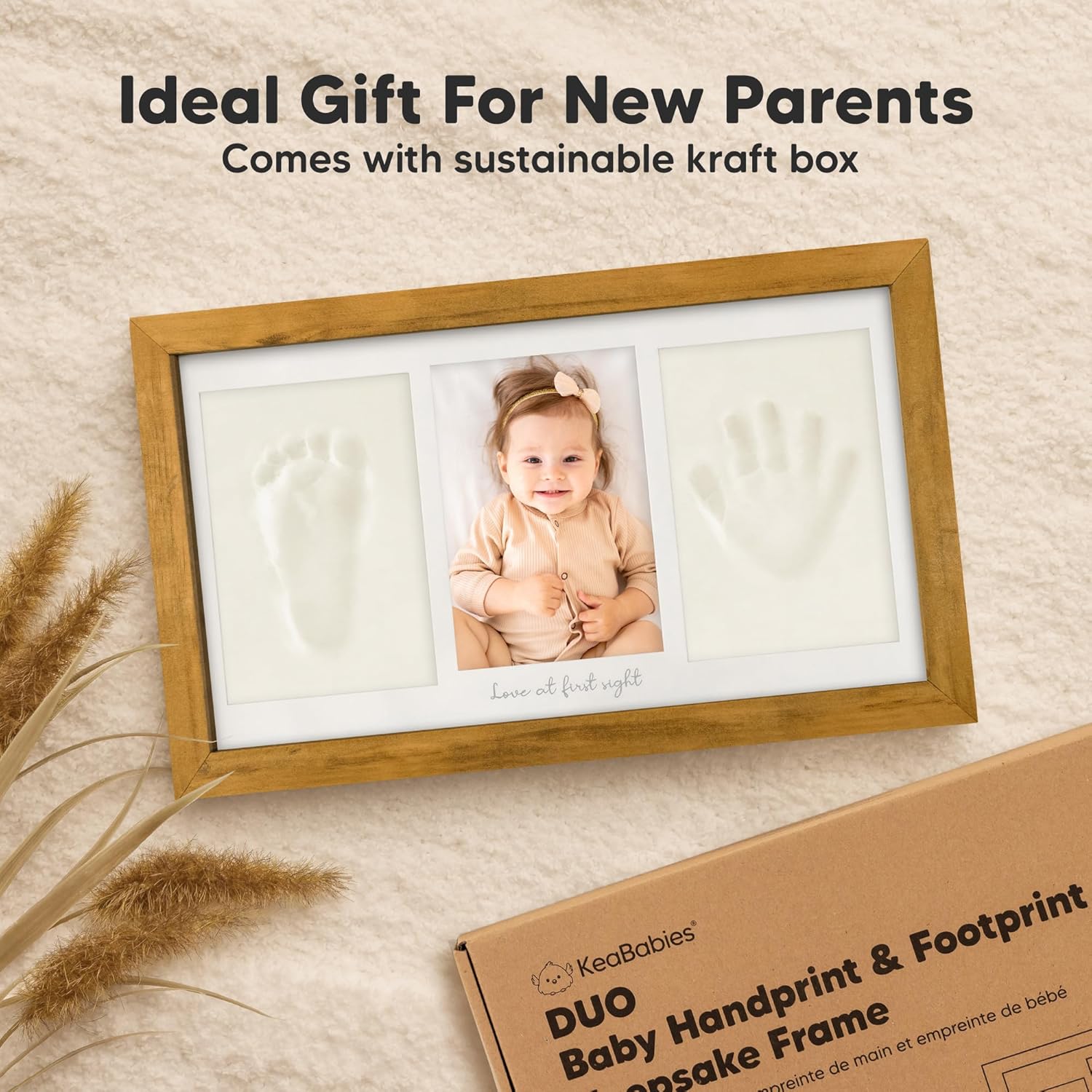 Baby Hand and Footprint Kit - Clay Handprint Keepsake Frame, Newborn Nursery Picture Frame, Personalized New Mom Gifts for Baby Shower & Registry (Golden Wheat)