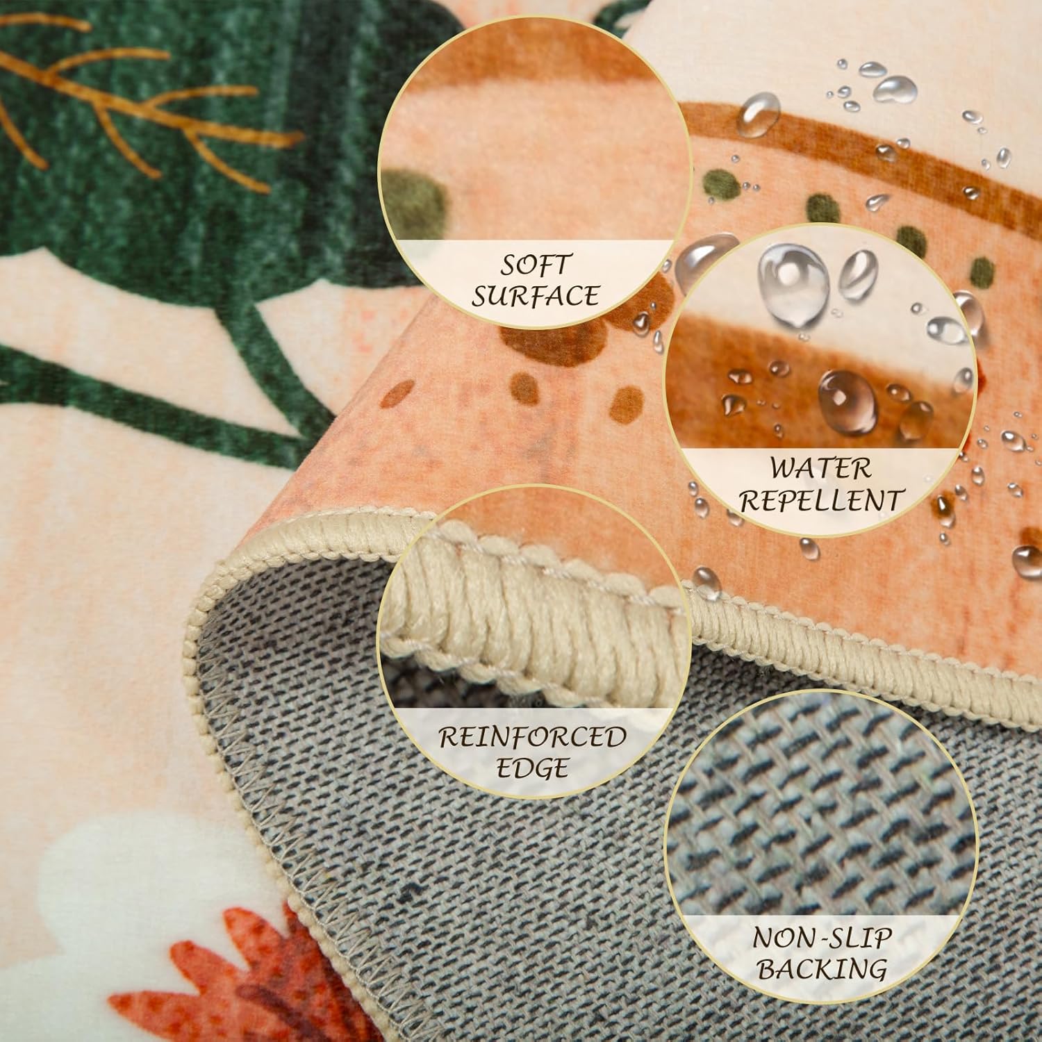 - Machine Washable:The bedroom rugs are machine washable,allowing for both machine wash and hand wash options.It is recommended to wash them in cold water.This floral rug is crafted with a low pile that won’t block opening and closing doors, make machine wash possible.Small stains can be blotted with a rag,soft-bristled brush,vacuum,or robotic vacuum cleaner.Avoid using bleach and high-temperature ironing