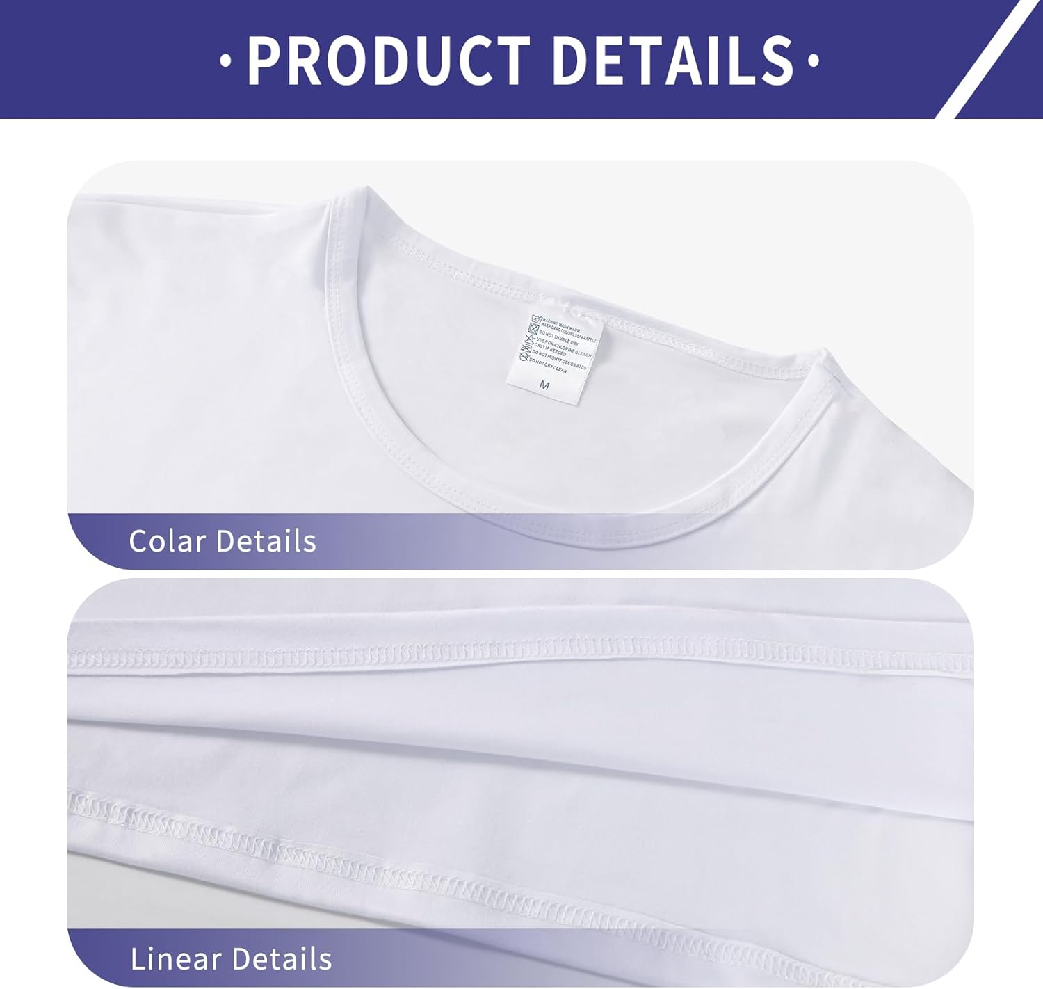 - Material :This blank T-shirt is made of high-quality 100% polyester fabric that is comfortable, breathable, not easy to pill, and soft. At the same time, it also has good durability and wrinkle resistance, and will not lose its original texture even after multiple washings