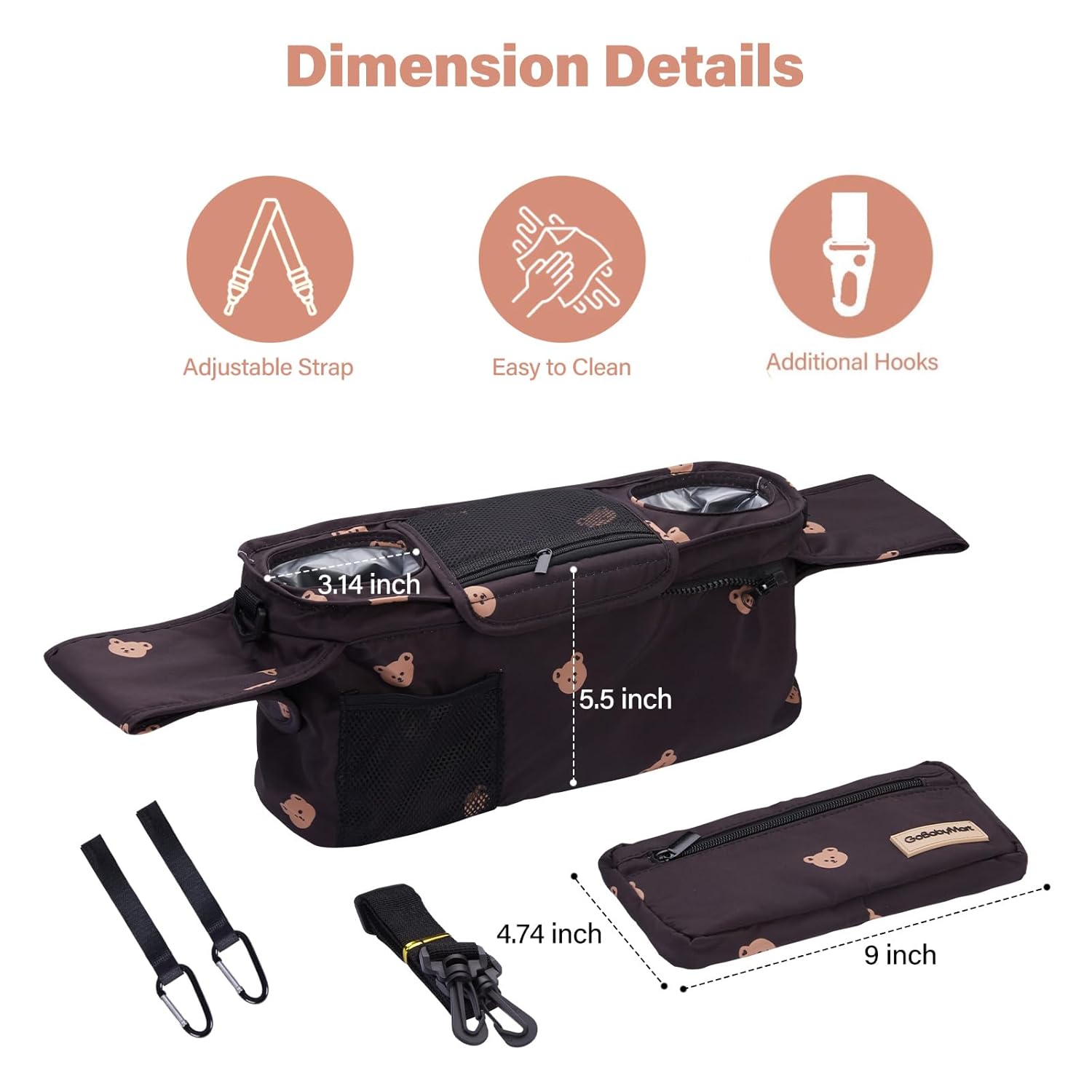 - Multi-Use & Detachable Design β 3-in-1 Functionality: Use as a stroller caddy, shoulder diaper bag with included strap, or detach the wristlet for quick errands or diaper changes.