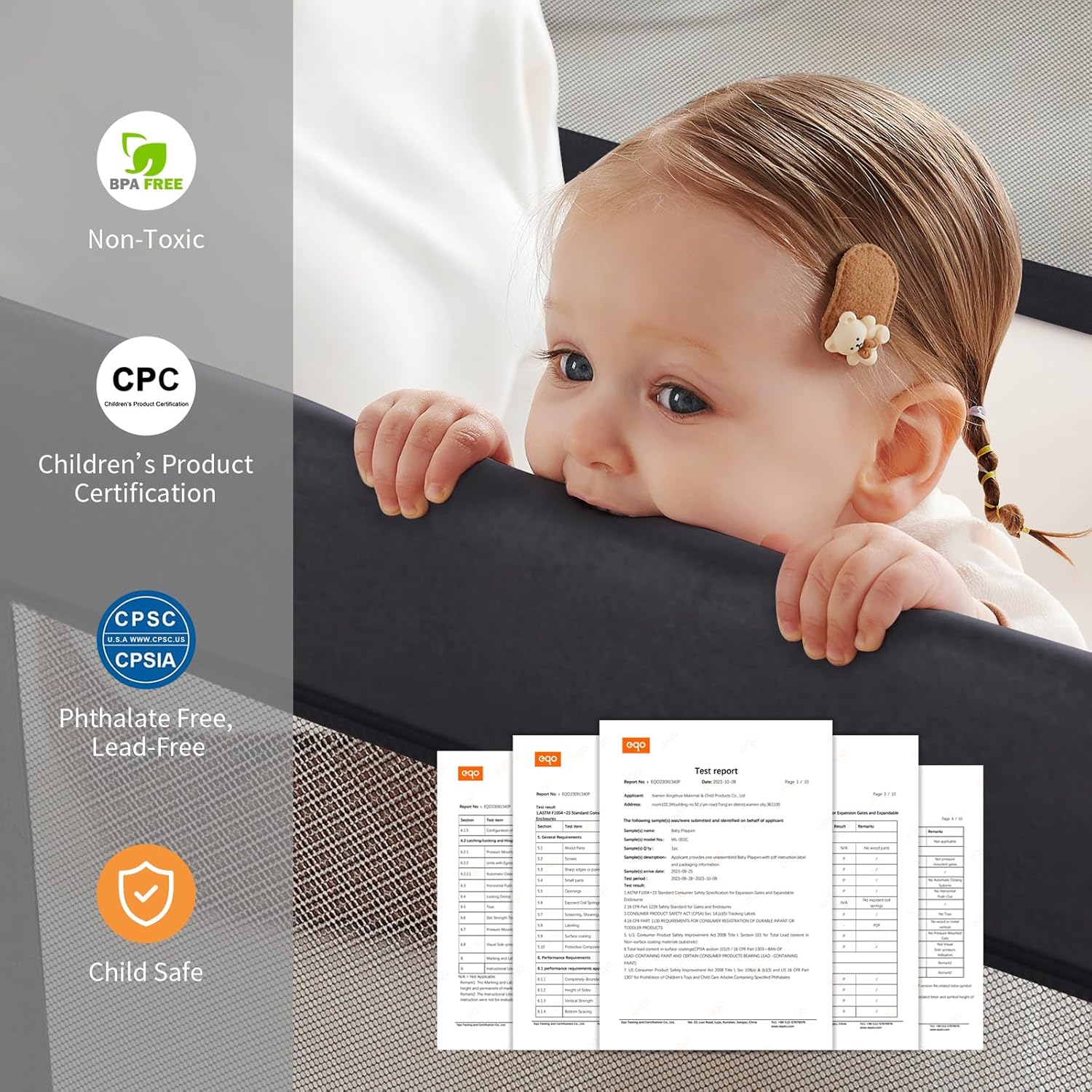 - [SAFETY FIEST]: Designed with safety in mind, our baby playpen features high-density sponge padding around the top and non-slip suction cups at the base, keeping your playpen securely in place and reducing the risk of bumps,your baby is safe in such a sturdy playpen.