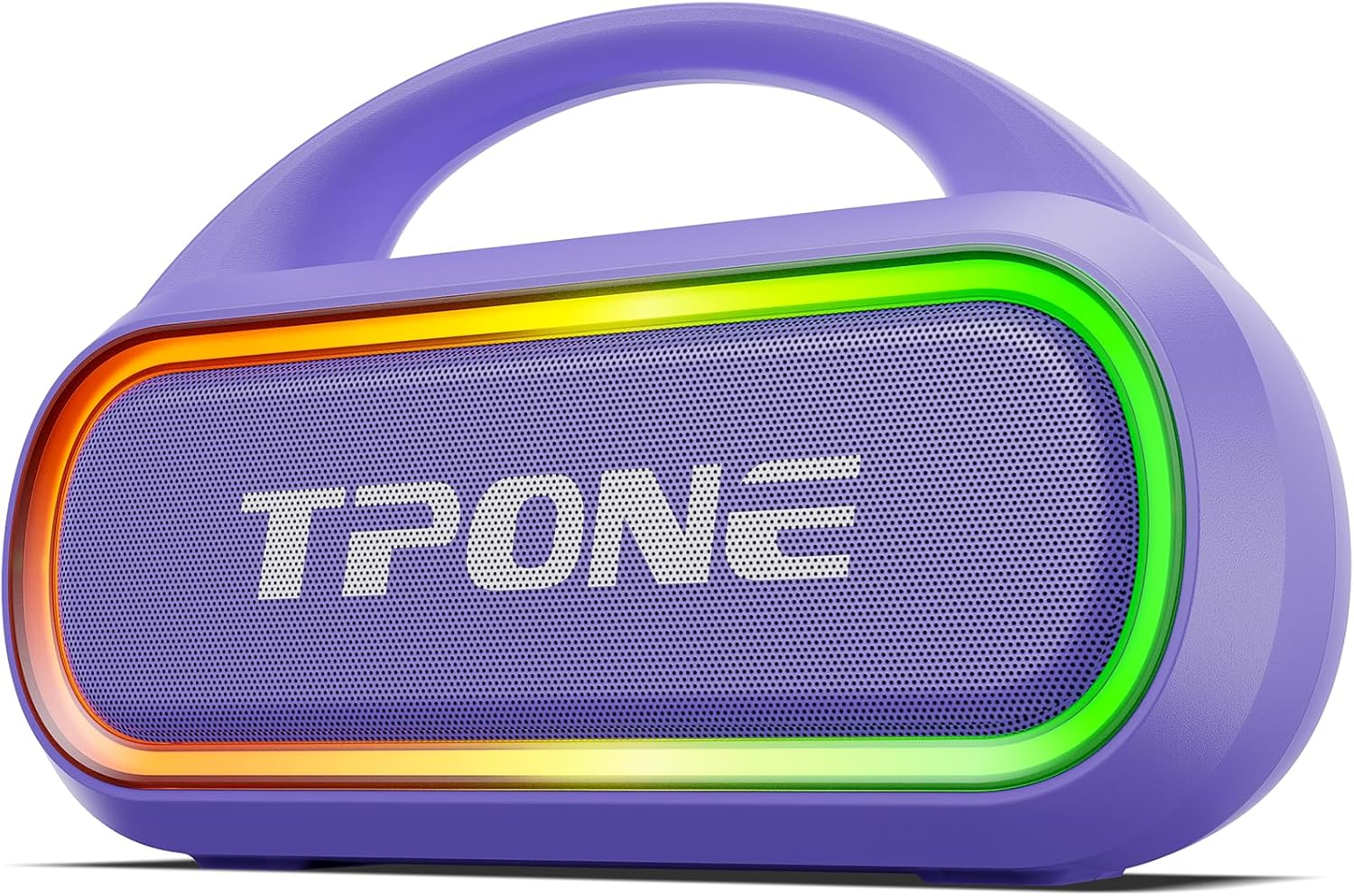 TPone Portable Bluetooth Speaker, 30W (Peak) Wireless Speaker for Outdoor, Up to 12H Playtime, IPX5 Waterproof with Light, TWS Pairing, for Home/Party/Outdoor/Beach, Birthday Gift (Chilled Lilac)