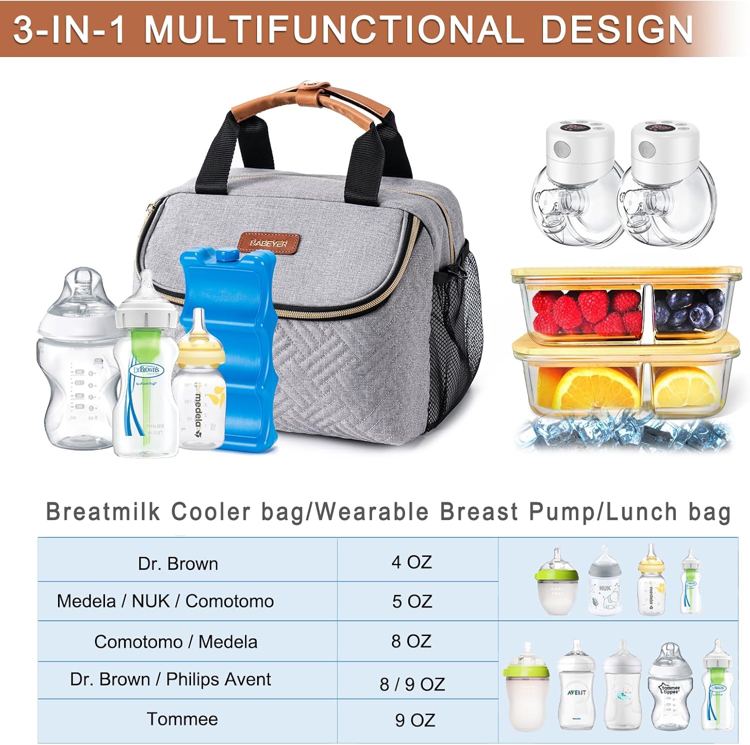 Breastmilk Cooler Bag with Ice Pack Fits 6 Baby Bottles up to 9 Ounce, Wearable Breast Pumps Cooler Bag for Nursing Mom Daycare, Work, Travel- Grey