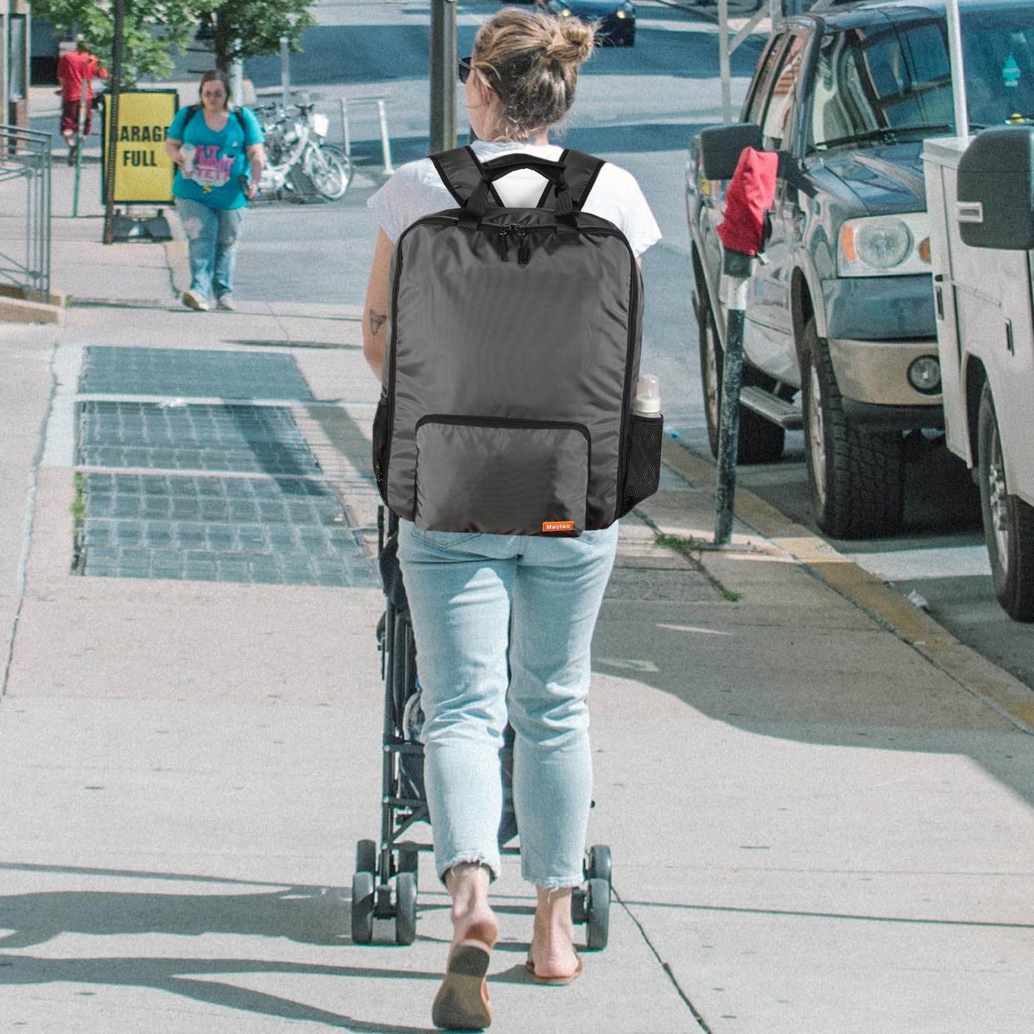 - 【Durable & Water-Resistant】 Made of durable & water-resistant nylon material to protect your baby stroller from the wear and able to isolate dirt. Metal double zipper makes the backpack open more smoothly and durable.