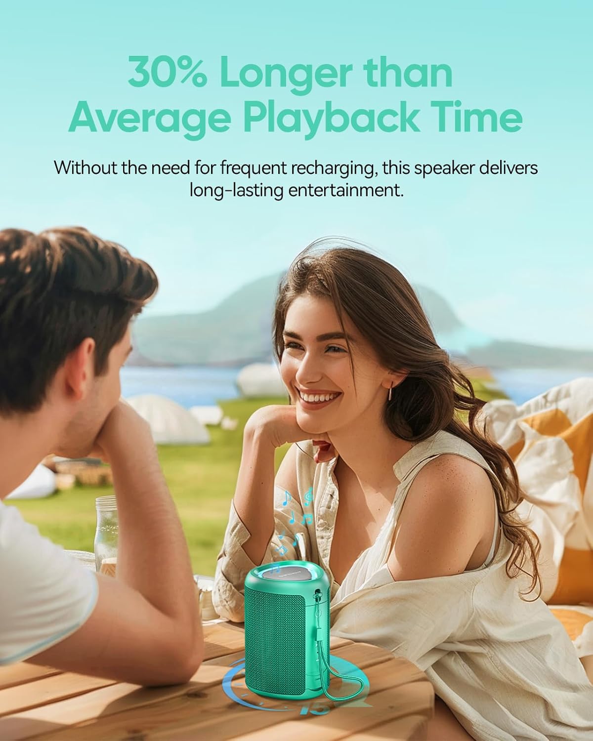 - ăImmersive Soundă: Experience stunning 15WïŒ20W peak) sound in a compact design. With zero distortion audio, this Bluetooth speaker delivers loud highs, crisp midrange, and full bass for an immersive listening experience. With up to 15 hours of playtime on a single charge, enjoy your favorite tunes all day and night without interruption