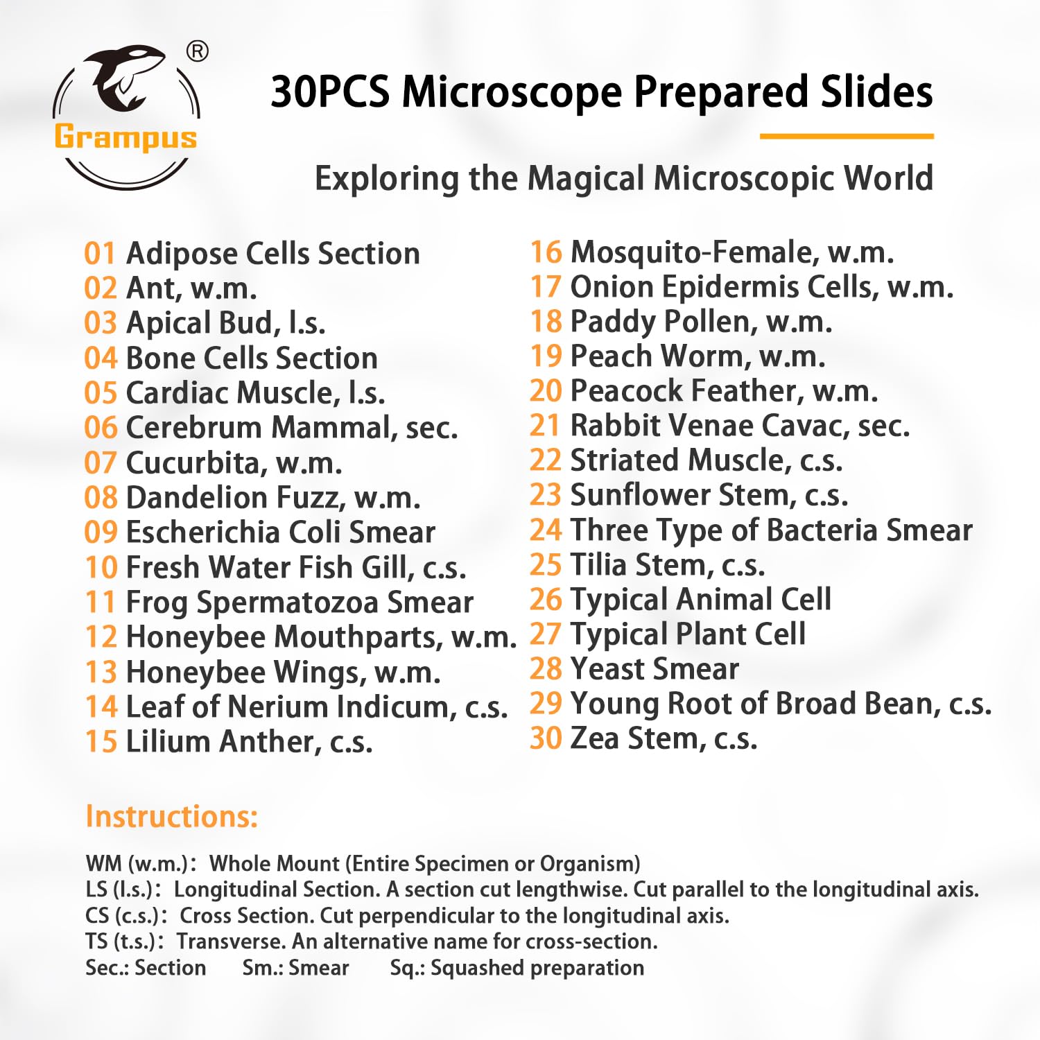 - Abundant Observation Types: Well selected microscope prepared slides, including different types: animals, insects, plants and microorganism. Each slide has a name label and attached a list of all glass slide catalogues, helps stimulate children's imagination and creativity, as well as their interest in exploring nature