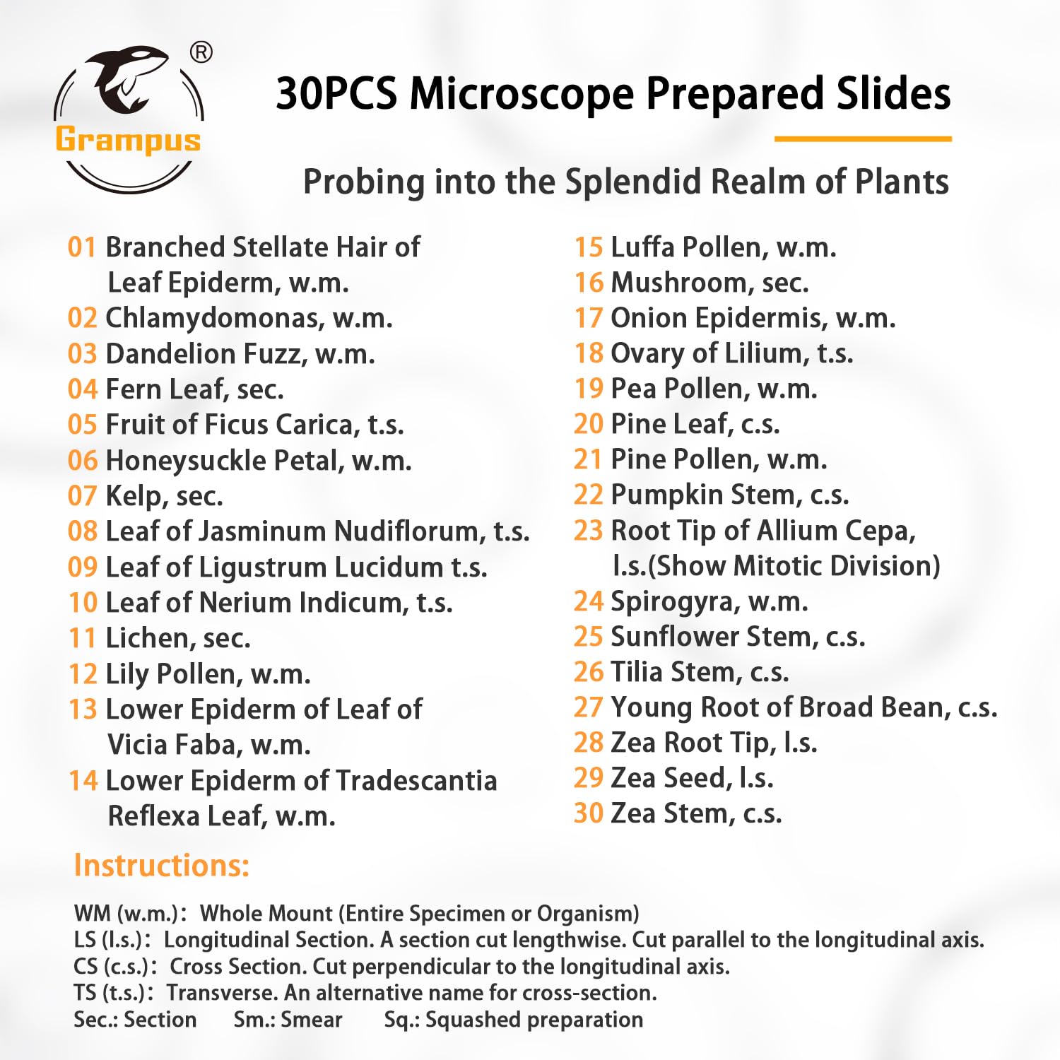 - Abundant Observation Type: Well selected microscope prepared slides of plants. Each slide has a name label and attached a list of all glass slide catalogues, helps stimulate children's imagination and creativity as well as their interest in exploring nature