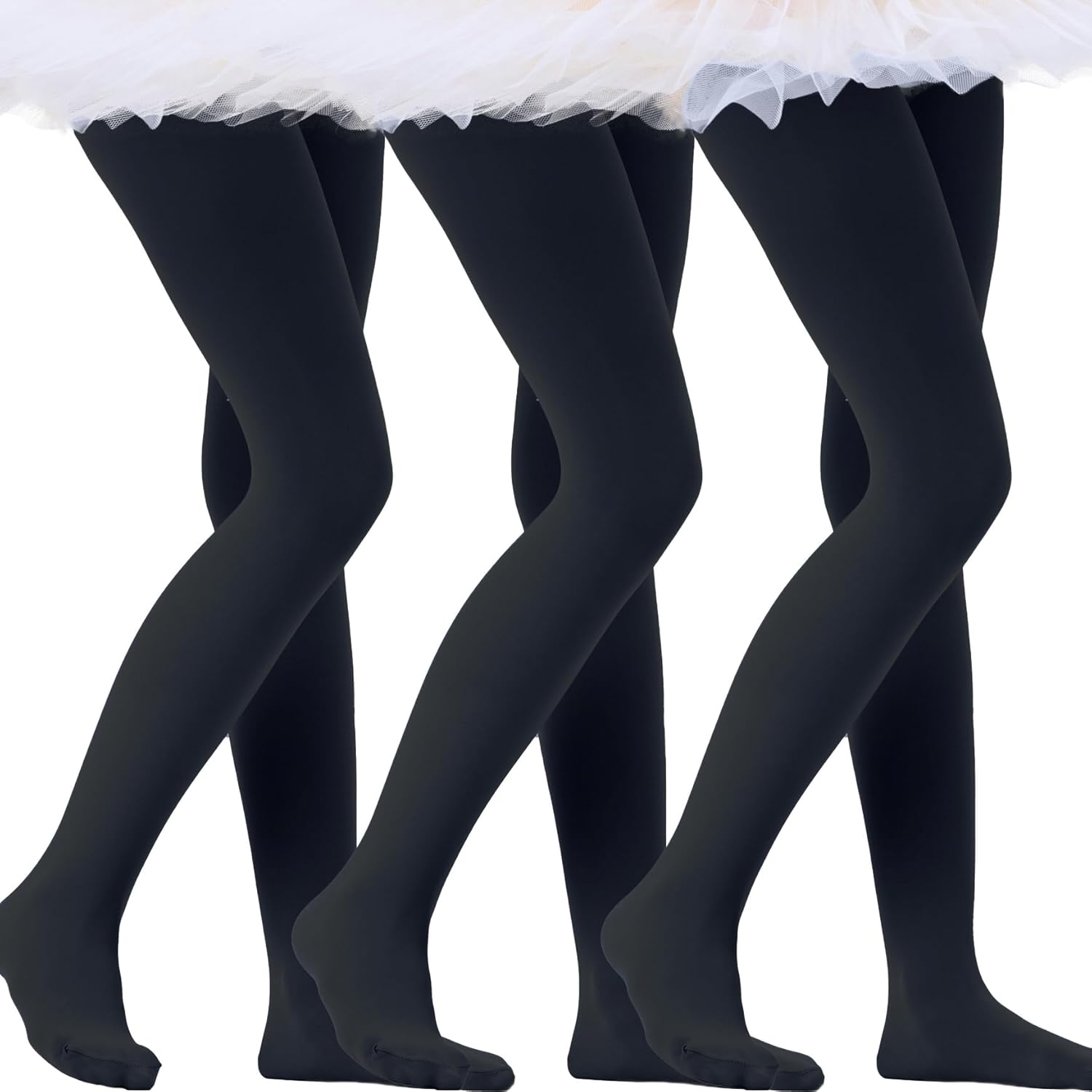 Citystl Ballet Tights for Girls - 3 Pairs, Multiple Colors, Cotton School Dress Tights