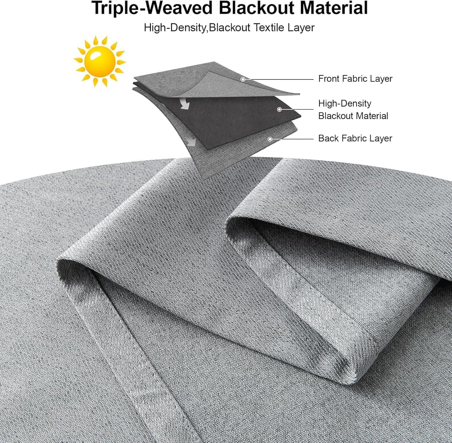 - 【100% Blackout】Joydeco blackout curtains are three layered woven textured fabric, both front and back layer are faux linen fabric, the middle layer is made of high-quality blackout material. The unique three-layer weaving process can make these full blackout curtains achieve 100% blackout effect in dark and light colors. you can choose any color that suits your home decoration