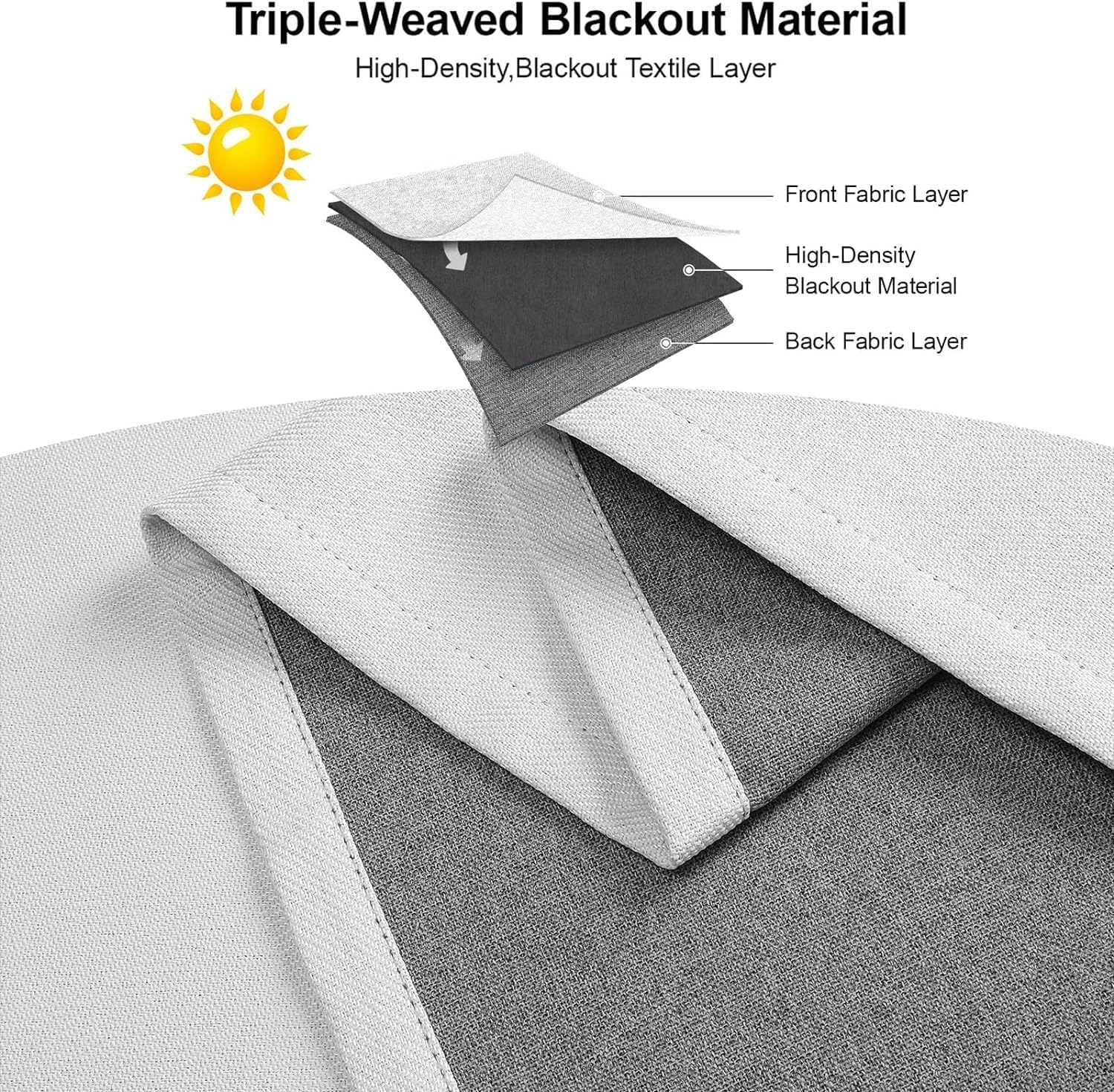 - 【100% Blackout】Joydeco blackout curtains are three layered woven textured fabric, both front and back layer are faux linen fabric, the middle layer is made of high-quality blackout material. The unique three-layer weaving process can make these full blackout curtains achieve 100% blackout effect in dark and light colors. you can choose any color that suits your home decoration