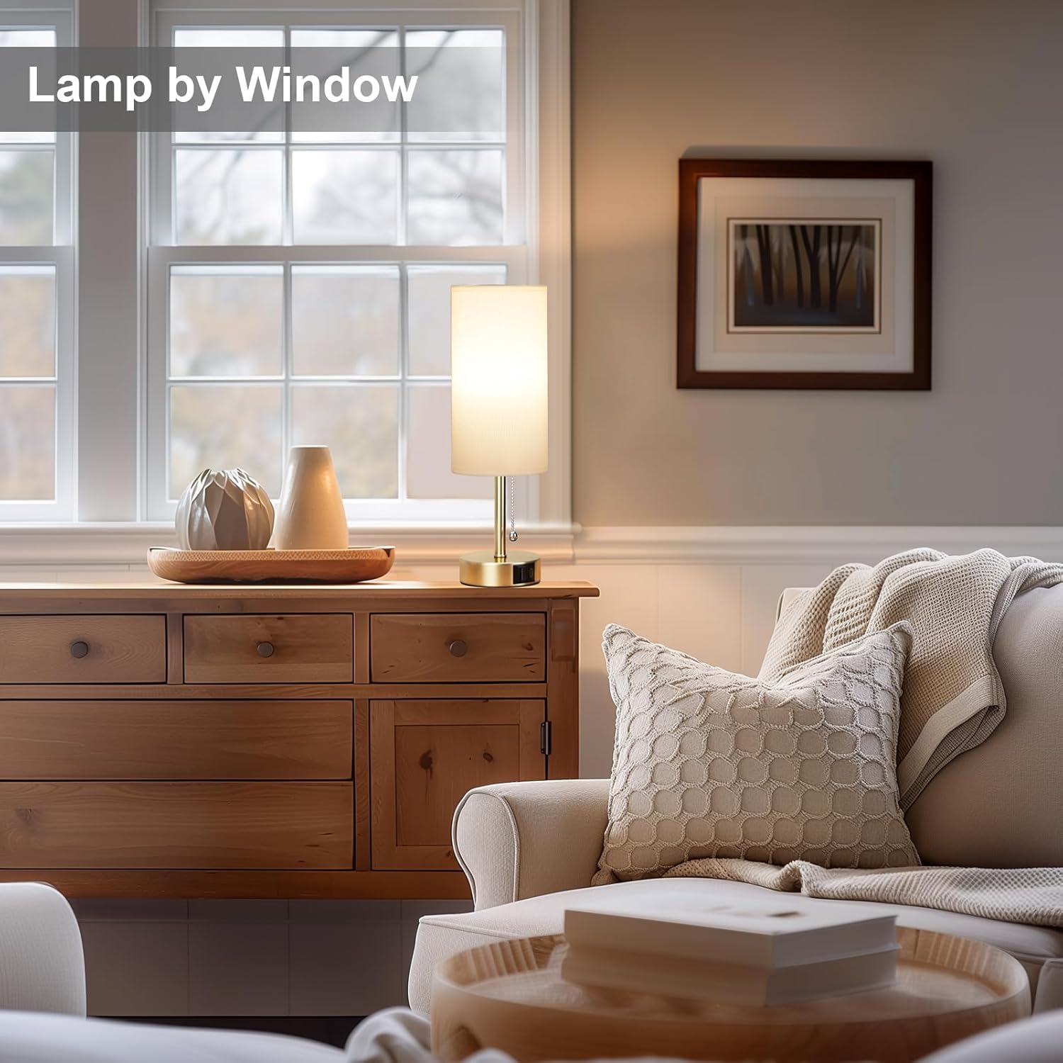 - 1. 3-Color Temperature Bedroom Lamp - The small gold table lamp for bedroom features with stylish pull-chain to make quick changes to 3 different level brightness (Low, High, Medium ), and soften the atmosphere quickly for you. Simply give the string a little tug when you want the nightstand lamp On/Off, brighter/dimmer. (Used as a night lamp at low brightness, medium/high is enough to meet your needs for reading/working.)