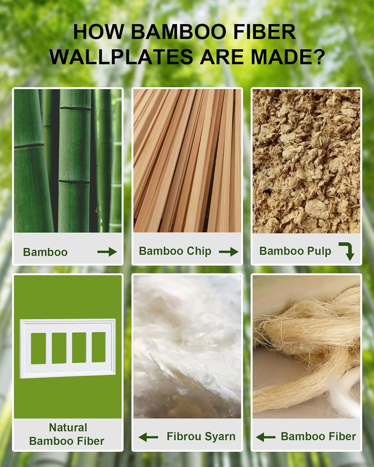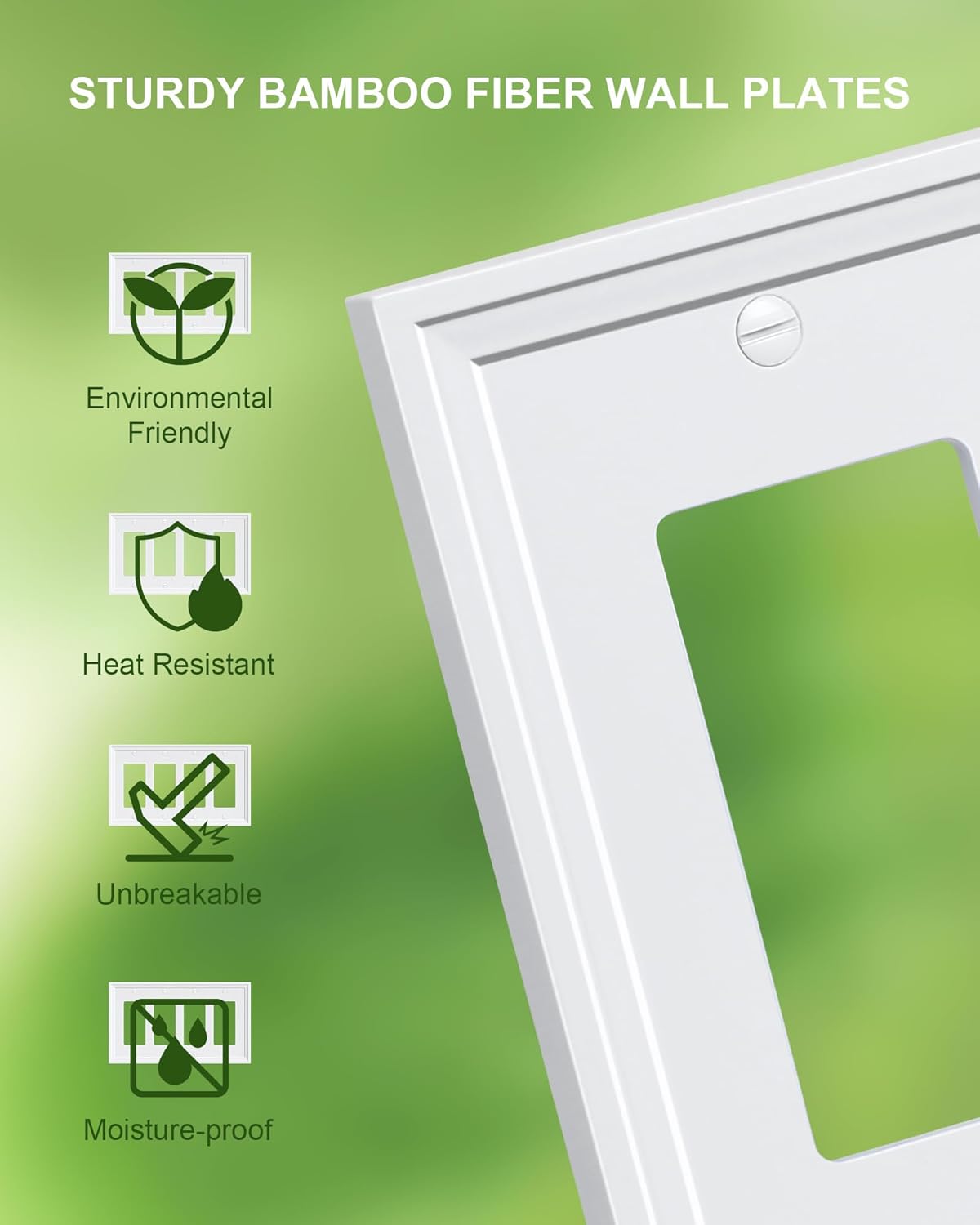 2-Pack Quad Decorator Outlet Cover Plate, White Decorative Switch Plates and Outlet Covers, Natural Bamboo Fiber Wall Plates for Electrical Outlets, Receptacle, GFCI Outlet, Dimmer Switch