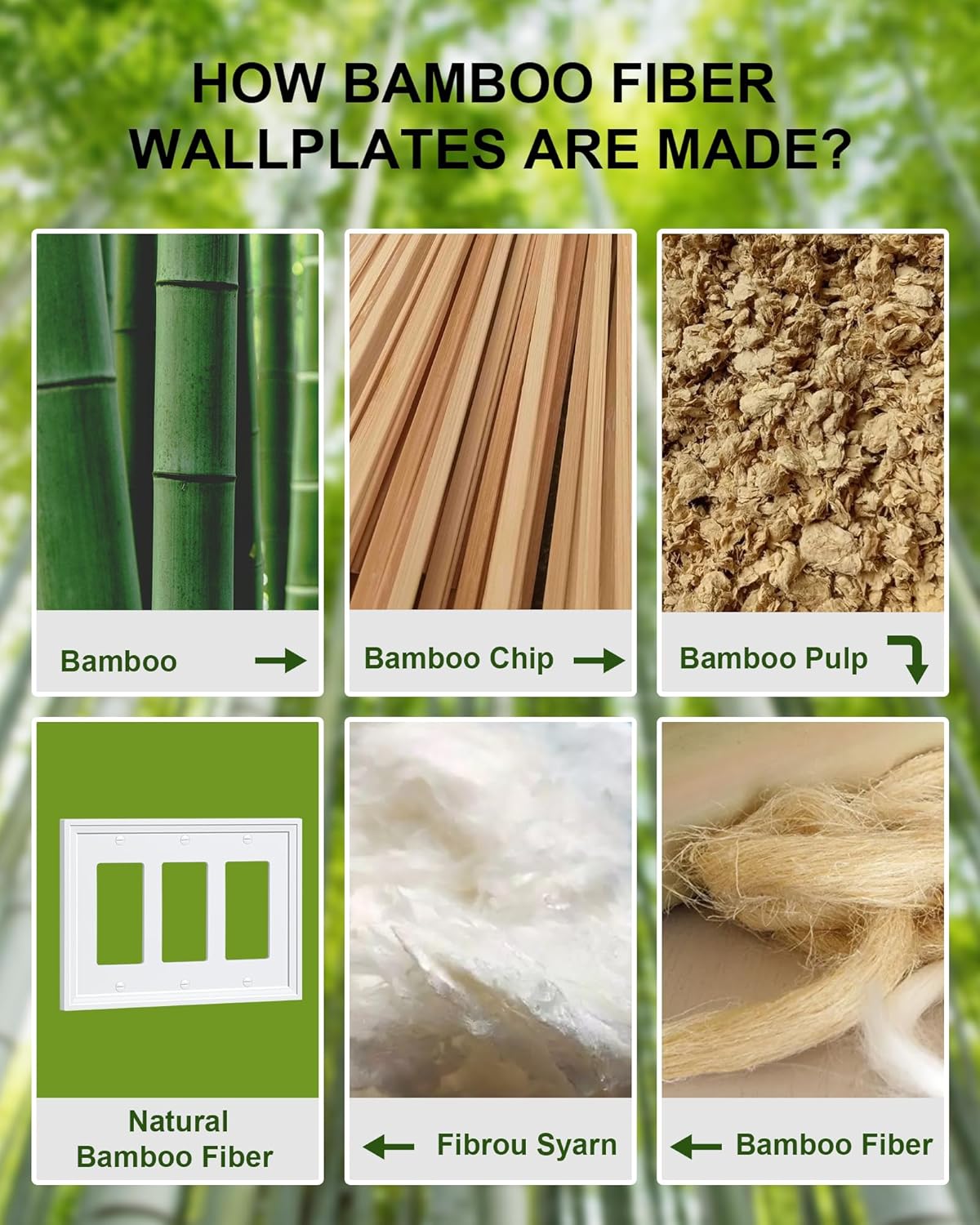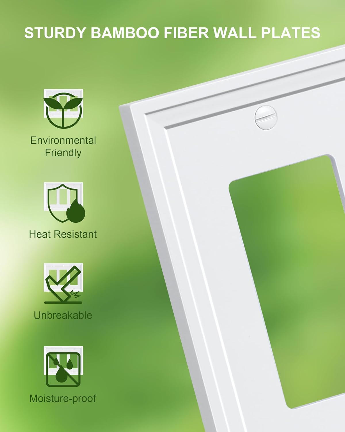 2-Pack Triple Decorator Outlet Cover Plate, White Decorative Switch Plates and Outlet Covers, Natural Bamboo Fiber Wall Plates for Electrical Outlets, Receptacle, GFCI Outlet, Dimmer Switch