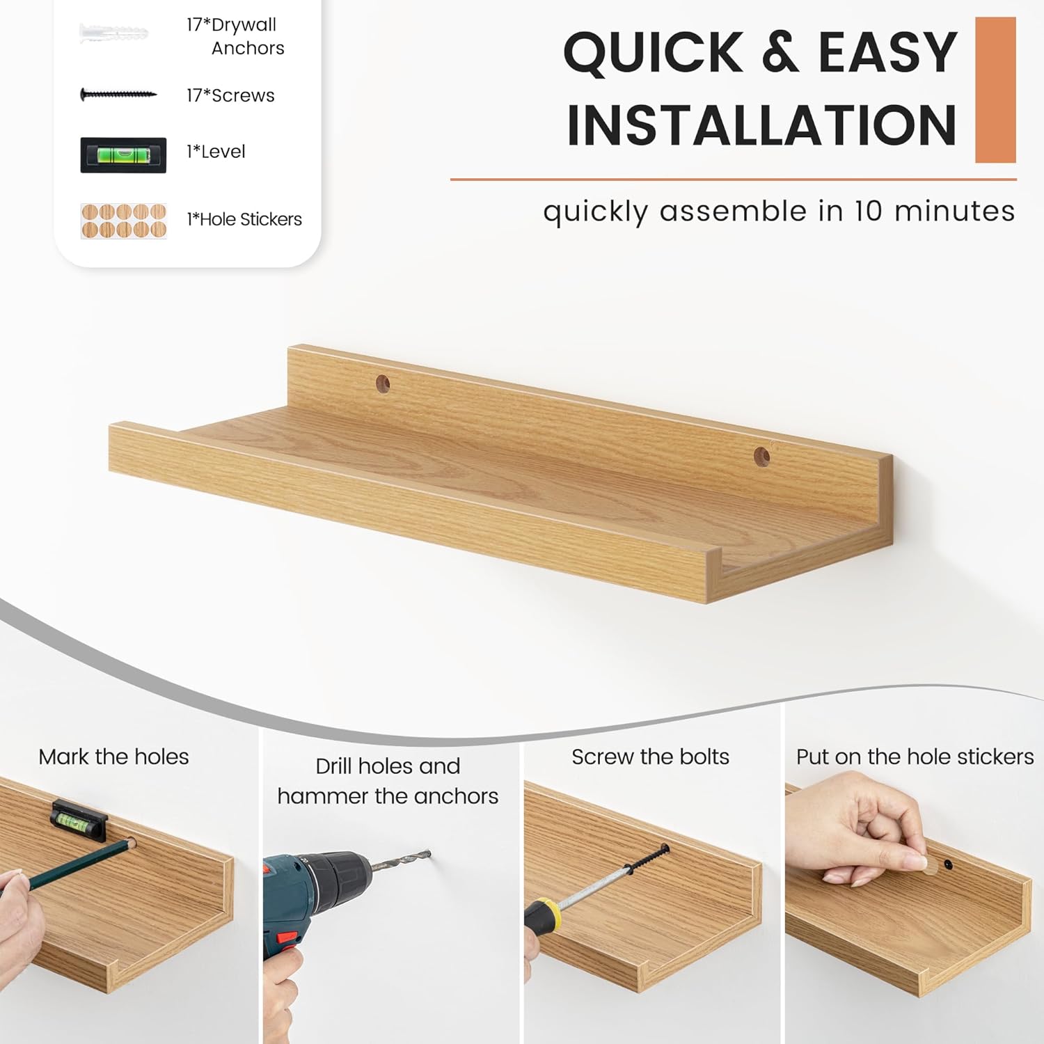 - ăEasy to InstallăFLYJOE picture ledge shelves are quick and easy to install! Each set comes with pre-drilled holes and all necessary hardware, including a mini level for perfect alignment. With simple instructions, you can have your shelves up in minutes, allowing you to start decorating right away