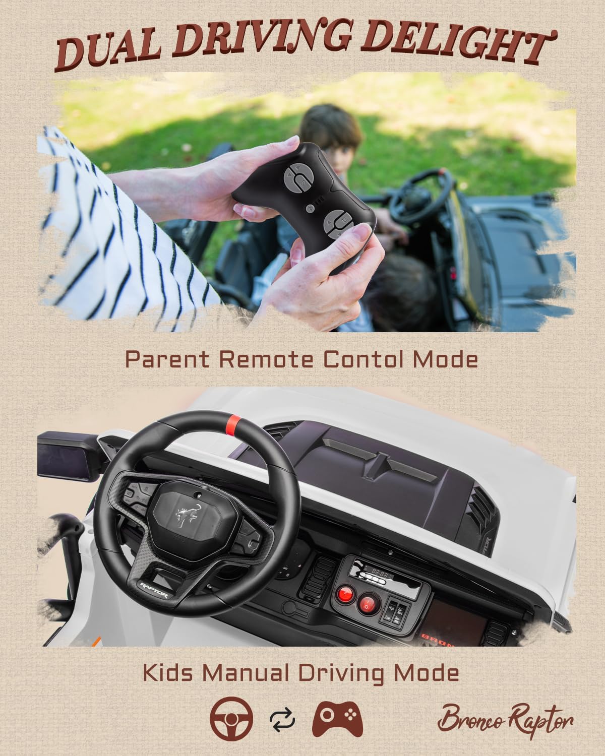 - OFFICIALLY LICENSED BY FORD BRONCO RAPTOR: This 24v ride on toys for big kids delivers an authentic driving experience