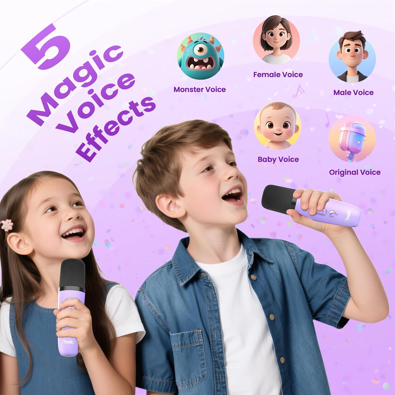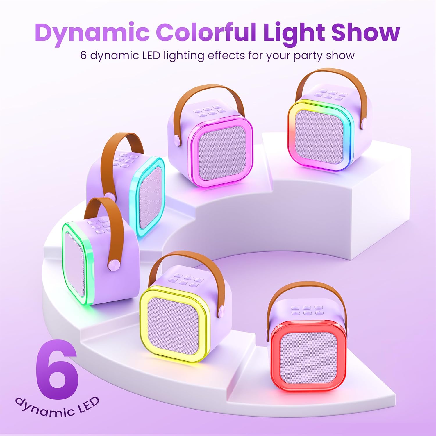 Karaoke Player, Karaoke Machine for Adults, Portable Bluetooth Mini Karaoke Microphone Singing Speaker Player with 2 Wireless Mic, All Smartphones,Birthday, Family,Home Party(Purple)