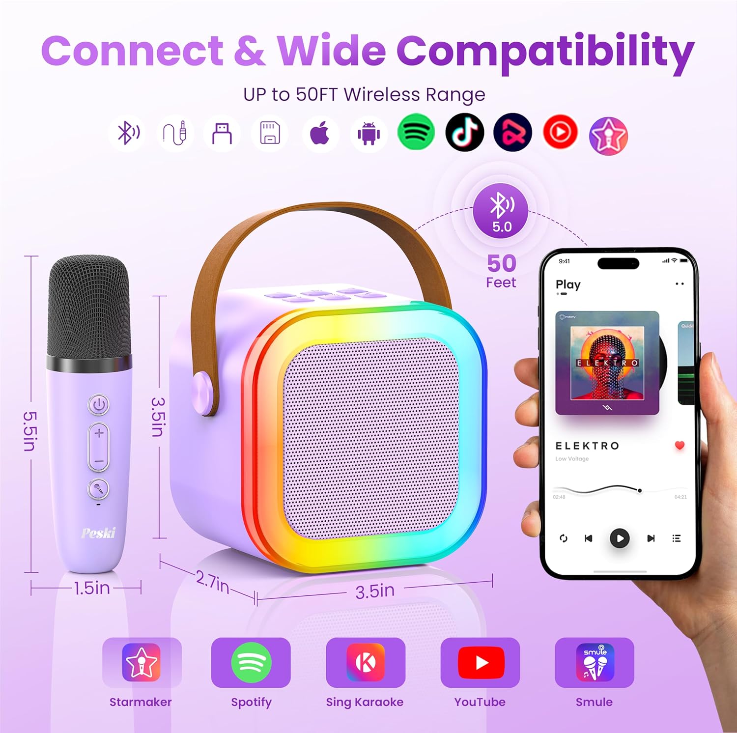 - 【6-10H WORRY-FREE BATTERY LIFE】: Peski's exclusive, long-life rechargeable battery technology. Quicker charging,and it can doubles as a power bank to charge your smartphone/tablet, long-time lasting design in order to make it easy to bring the party with you wherever you go,perfect for parties and family gatherings!