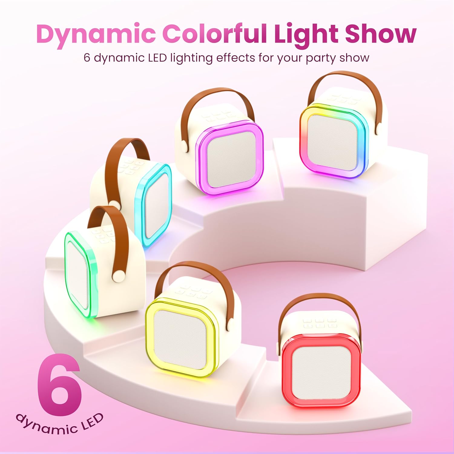 - 【5 MAGIC VOICE & COLORFUL LIGHTS】:The PA karaoke system is equipped with colorful disco lights and has an independent button to switch the lights.5 magic voice effects: monster, baby, female, male,original/accompaniment,this Bluetooth party speaker is providing endless fun and happiness for adults and kids.