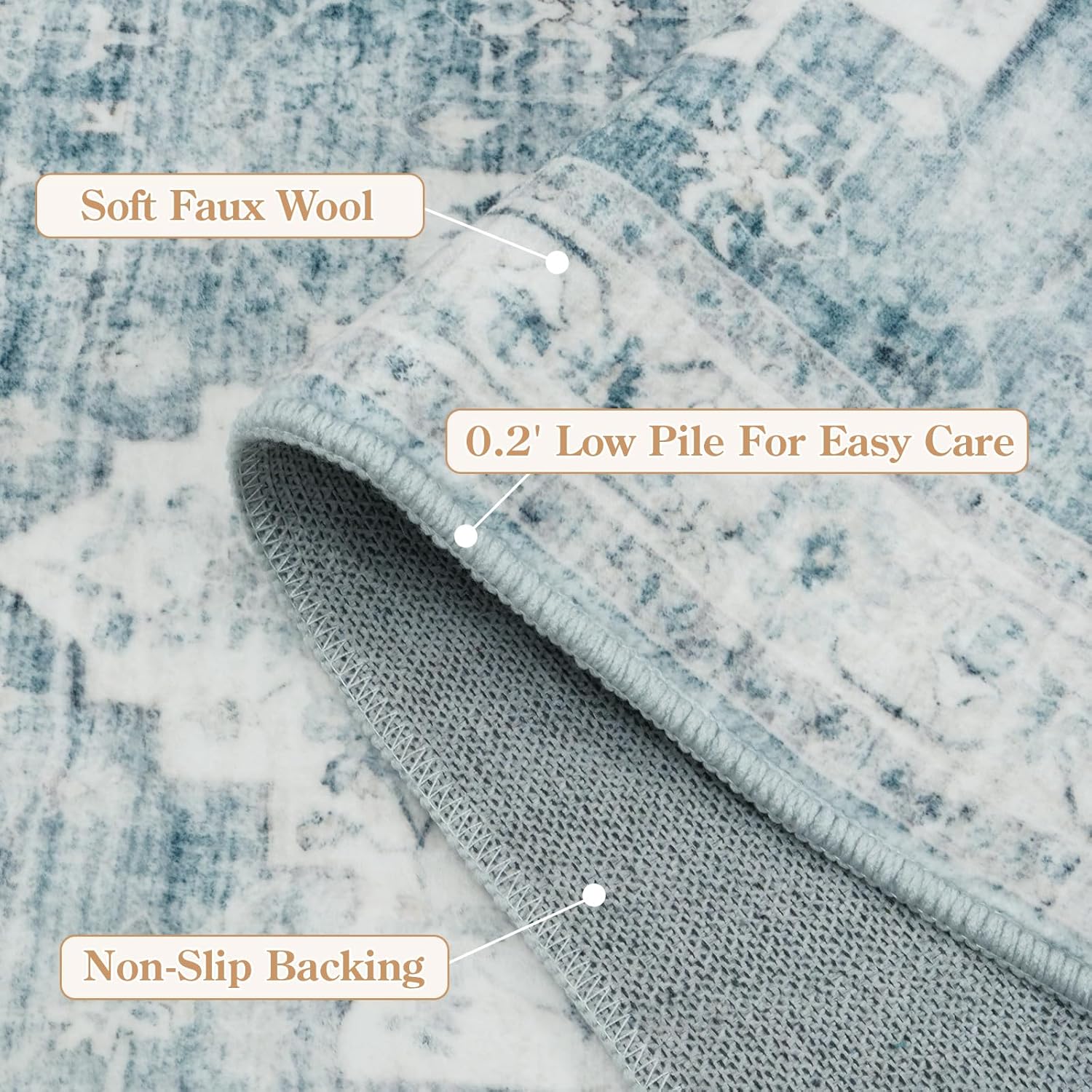 - Non-Slip & Easy Clean--Designed with a non-slip backing, our machine washable rugs are suitable for most areas. The 0.2-inch low pile prevents dust and pet hair buildup, and it's recommended for spot cleaning or commercial laundry cleaning.