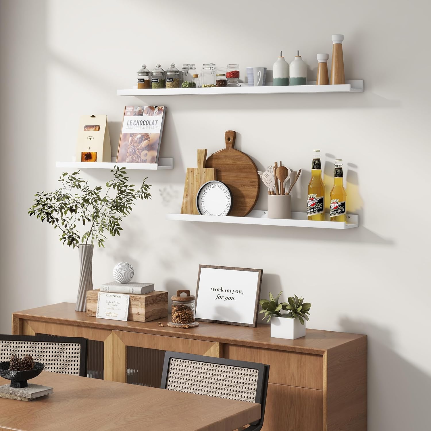 Picture Ledge Shelf for Wall, 16 inches Solid Pine Wood Nursery Book Shelves 3 Packs, Floating Ledge Shelves for Kids' Room Bedroom Bathroom Living Room Photo Frames Office Nursey Wall Decor, White