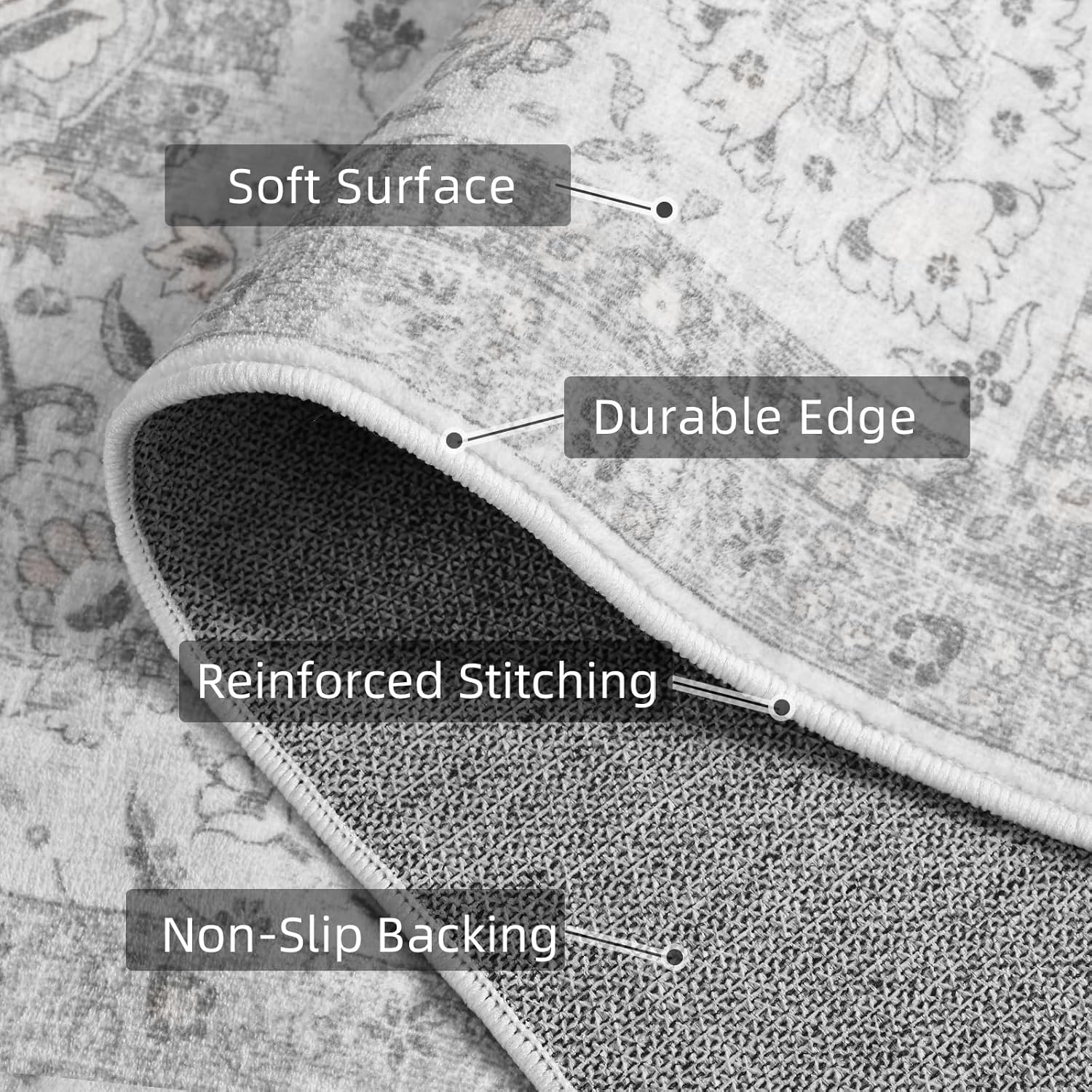 Deerly Light Grey Vintage 6x9 Nursery Rugs for Living Room, Rug Boho Washable Area Rug with Non-Slip Backing, Indoor Carpet for Bedroom Dining Room