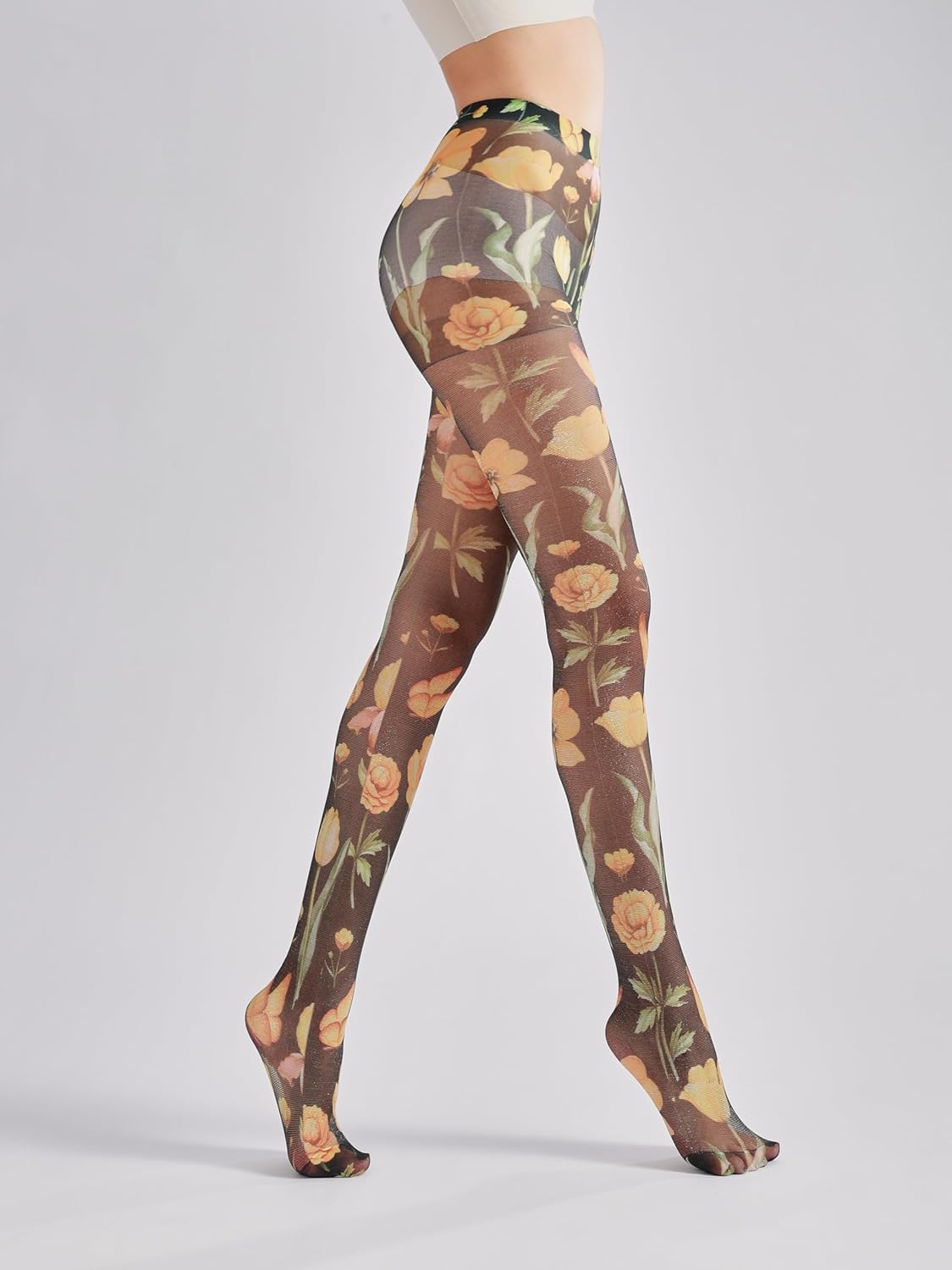Sahabowi Women's Sheer Fashion Digital Print Fashions Stockings Metallic Silver Tights 1