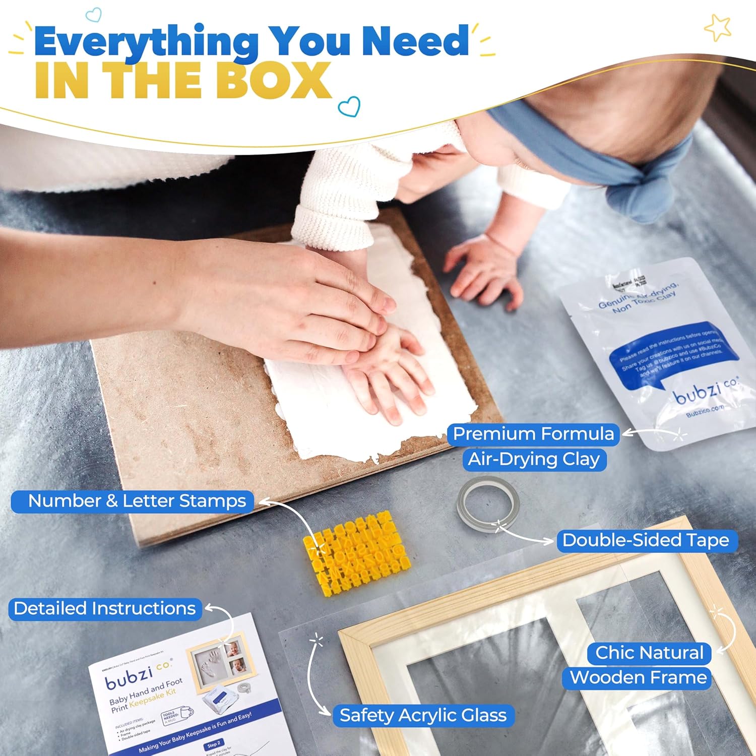 - LASTS A LIFETIME The Bubzi Co baby keepsake clay frame is crafted with care using safe, non-toxic, durable clay. This premium quality baby handprint and footprint keepsake kit captures your little ones prints perfectly with a smooth, lasting finish you can look back on for a lifetime!