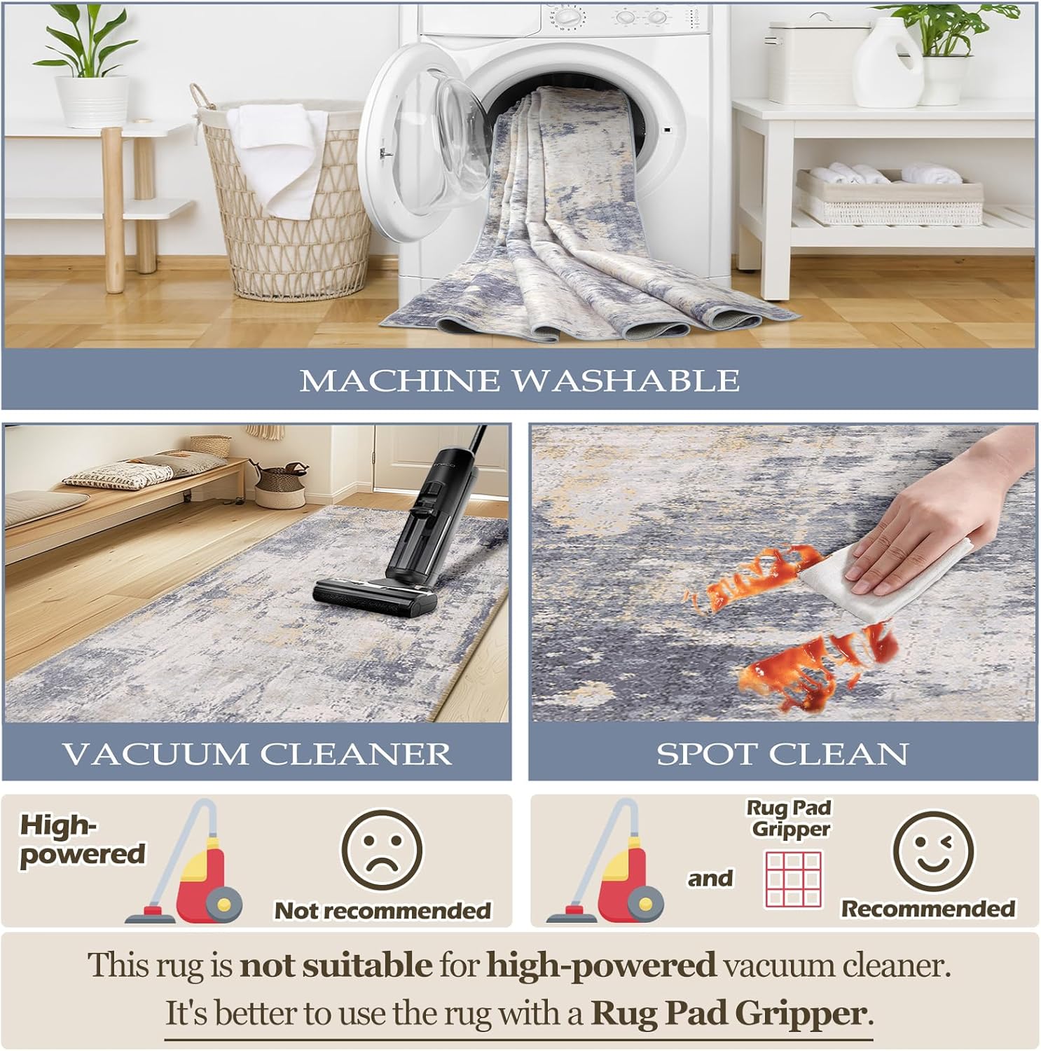 - Tides Series โ Effortless style that flows with your life.This modern machine-washable non-slip rug features reinforced edges and a low-pile design that resists dirt. Its water-repellent surface makes spills easy to clean - liquids bead up for quick wiping. Simply machine wash in cold water (no bleach) to refresh. The non-slip backing keeps it securely in place. A perfect blend of function and contemporary design for active homes.